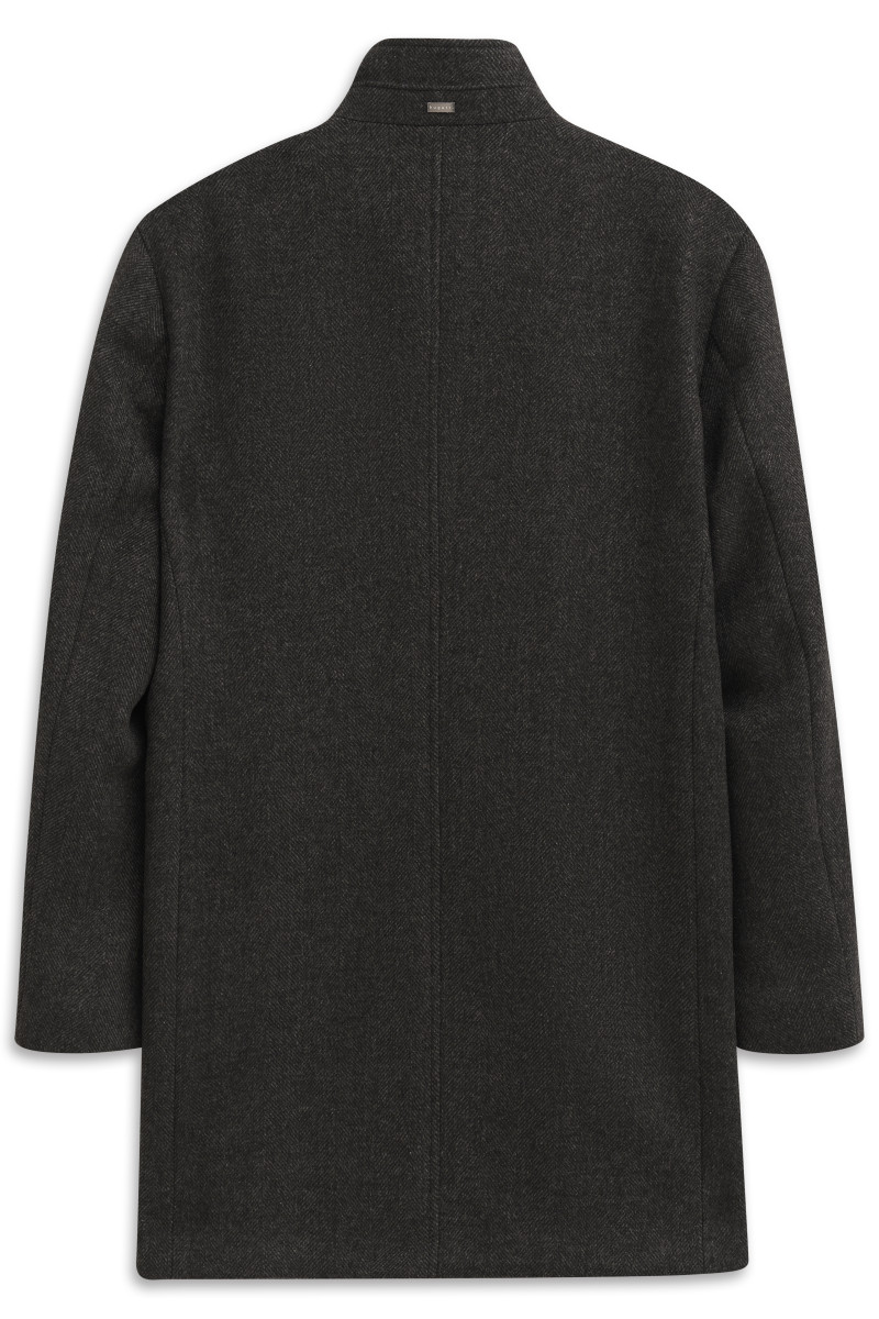 Klassischer Stehkragenmantel mit heraustrennbarem Westenfake und schrägen Leistentaschen. Innen ein ganzes Futter mit Flexcity Einsätzen im Rücken und Innentaschen. Der Artikel mit 40% Wollanteil hat eine Fischgräten Dessinierung.