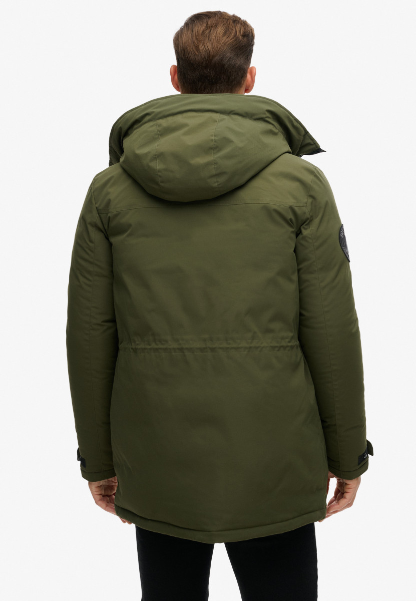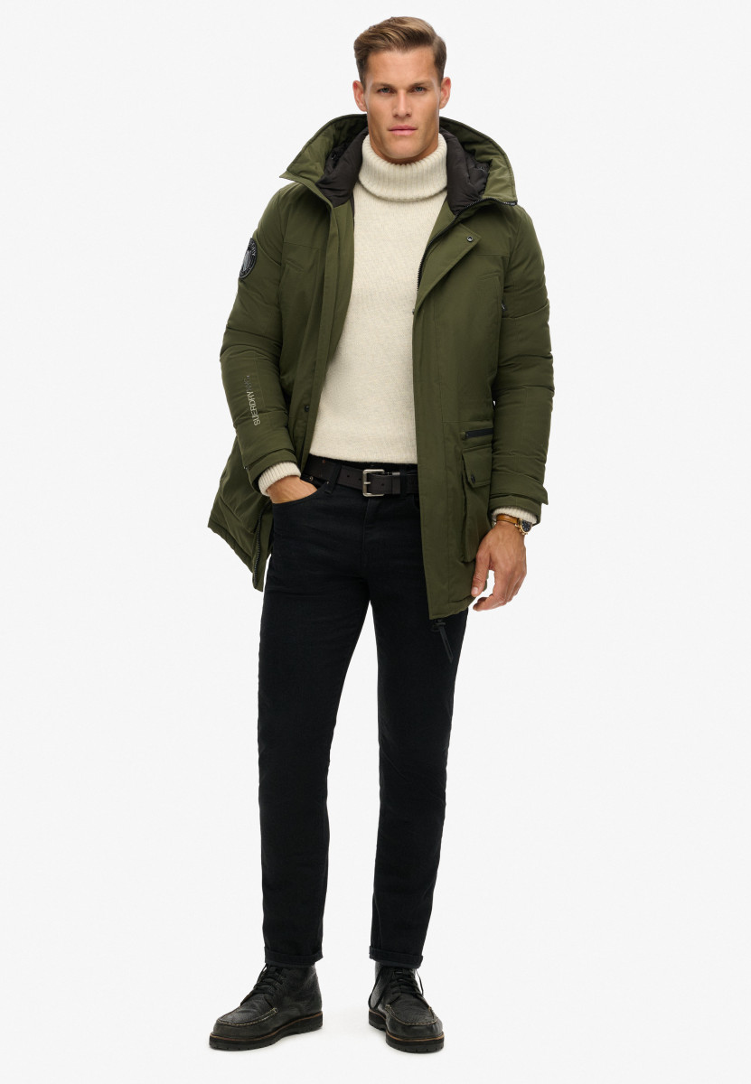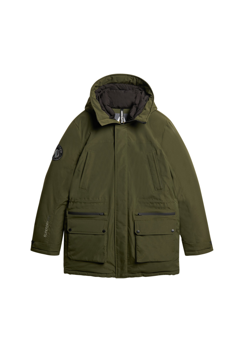 Lockere Passform – hier trifft Komfort auf Coolness. Dauerhaft wasserabweisend – dieses Material verfügt über eine moderne, wasserabweisende Beschichtung | Kapuze | Durchgehend wattiert | Reißverschluss und Druckknopfverschluss | Sechs Außentaschen und zwei Seitentaschen | Verstellbare Bündchen mit Druckknöpfen | Innenliegender Ärmel mit Daumenloch | Verstellbarer Kordelzug in der Taille | Saum mit verstellbarem Gummizug | Innentasche aus Mesh | Aufgestickter kontrastierender Schriftzug auf der Rückseite | Charakteristischer Aufnäher am Ärmel