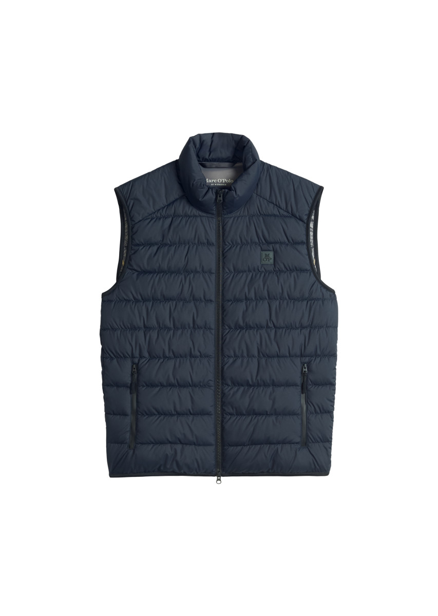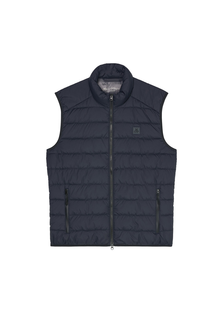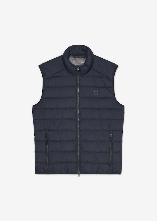 Perfekte Lösung für die Übergangszeit: Steppweste mit wasserabweisender Oberfläche aus recyceltem Polyester, Stehkragen und leichtläufigem Zwei-Wege-Reißverschluss. Seitlich befinden sich zwei Aquagard-Reißverschlusstaschen und auf der Innenseite zwei große Eingrifftaschen. Mit elastischem Abschluss am Armloch und dem geraden Saum. Das Modell kommt mit softer Sorona® Polymer Technology-Wattierung, unserer wärmenden Alternative zur Daunne und Federn. Die Innenseite ist kontrastfarben mit plakativem Schriftzug.