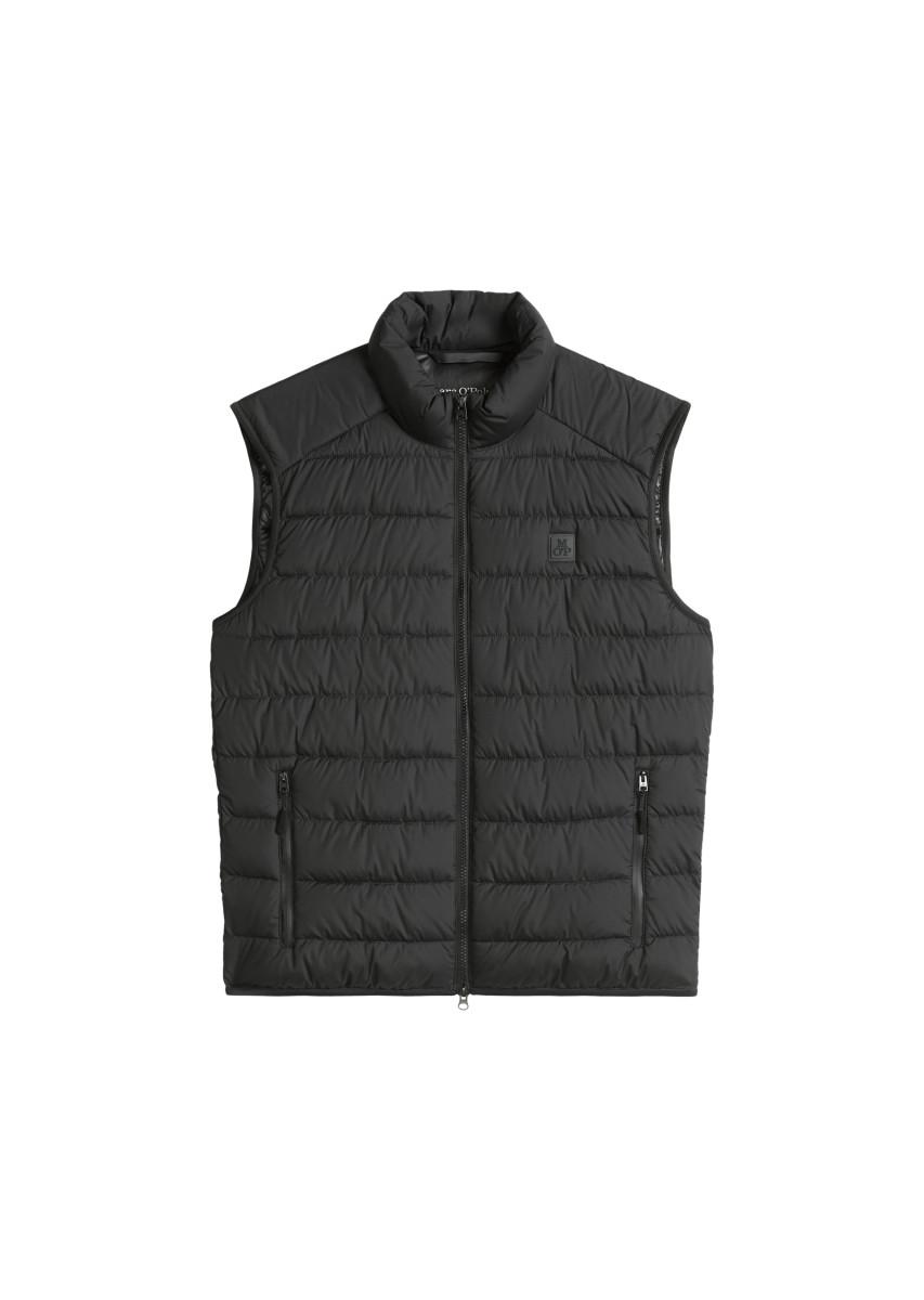 Perfekte Lösung für die Übergangszeit: Steppweste mit wasserabweisender Oberfläche aus recyceltem Polyester, Stehkragen und leichtläufigem Zwei-Wege-Reißverschluss. Seitlich befinden sich zwei Aquagard-Reißverschlusstaschen und auf der Innenseite zwei große Eingrifftaschen. Mit elastischem Abschluss am Armloch und dem geraden Saum. Das Modell kommt mit softer Sorona® Polymer Technology-Wattierung, unserer wärmenden Alternative zur Daunne und Federn. Die Innenseite ist kontrastfarben mit plakativem Schriftzug.