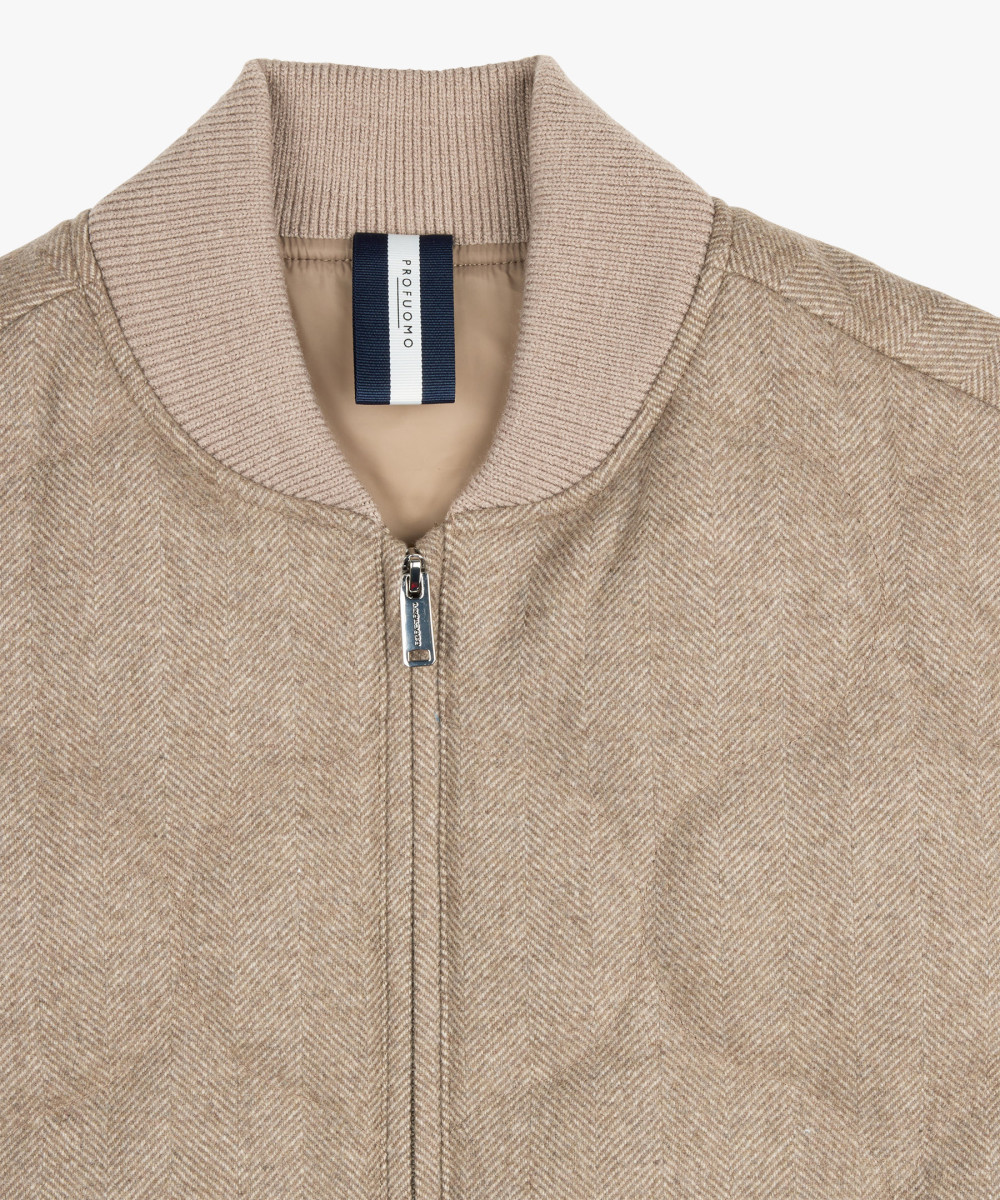 Diese ärmellose Steppweste in einem warmen Beigeton vereint modernen Komfort mit klassischer Raffinesse. Das leicht glänzende Obermaterial aus hochwertiger Wollmischung ist dezent strukturiert im Fischgratmuster, was der Weste eine edle Note verleiht.