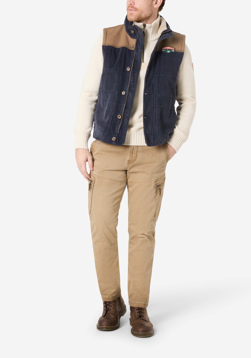 Stehkragen | Ohne Arm | Cord | Knopfleiste | Seitliche Eingrifftaschen | Reine Baumwolle | Logo-Patch auf der Brust
