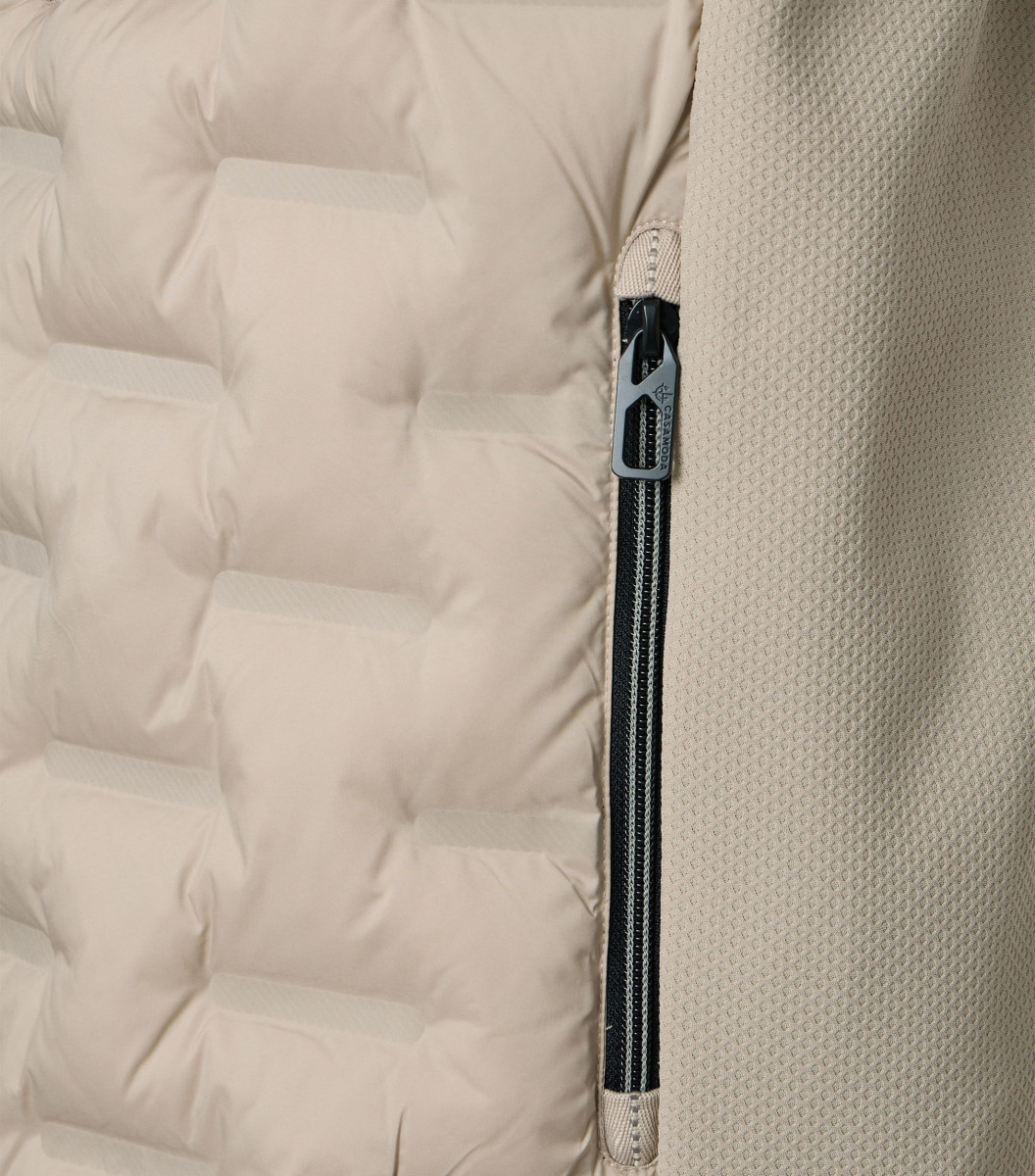 Ein hoher Kragen und der durchgehende Reißverschluss bieten zusätzlichen Schutz und ermöglichen eine flexible Anpassung an wechselnde Wetterbedingungen. Die durchdachte Konstruktion umfasst atmungsaktive Einsätze im oberen Schulterbereich, die für eine optimale Luftzirkulation sorgen und somit den Tragekomfort bei aktiven Unternehmungen erhöhen.