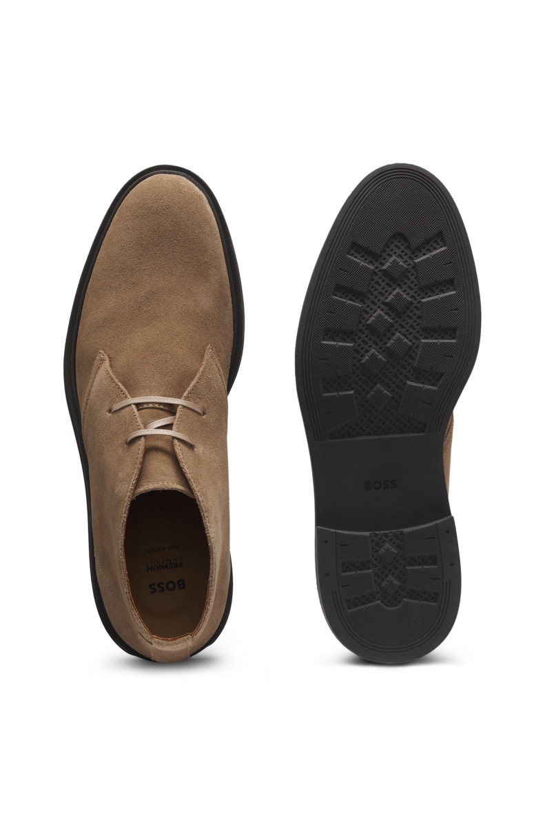 Diese eleganten Herren Desert Boots aus hochwertigem Veloursleder vereinen zeitlosen Stil mit modernem Komfort. Das weiche Obermaterial in einem warmen Beigeton sorgt für eine edle, natürliche Optik und lässt sich vielseitig kombinieren – ob zur Jeans im Alltag oder zur Chino im Business-Casual-Look.