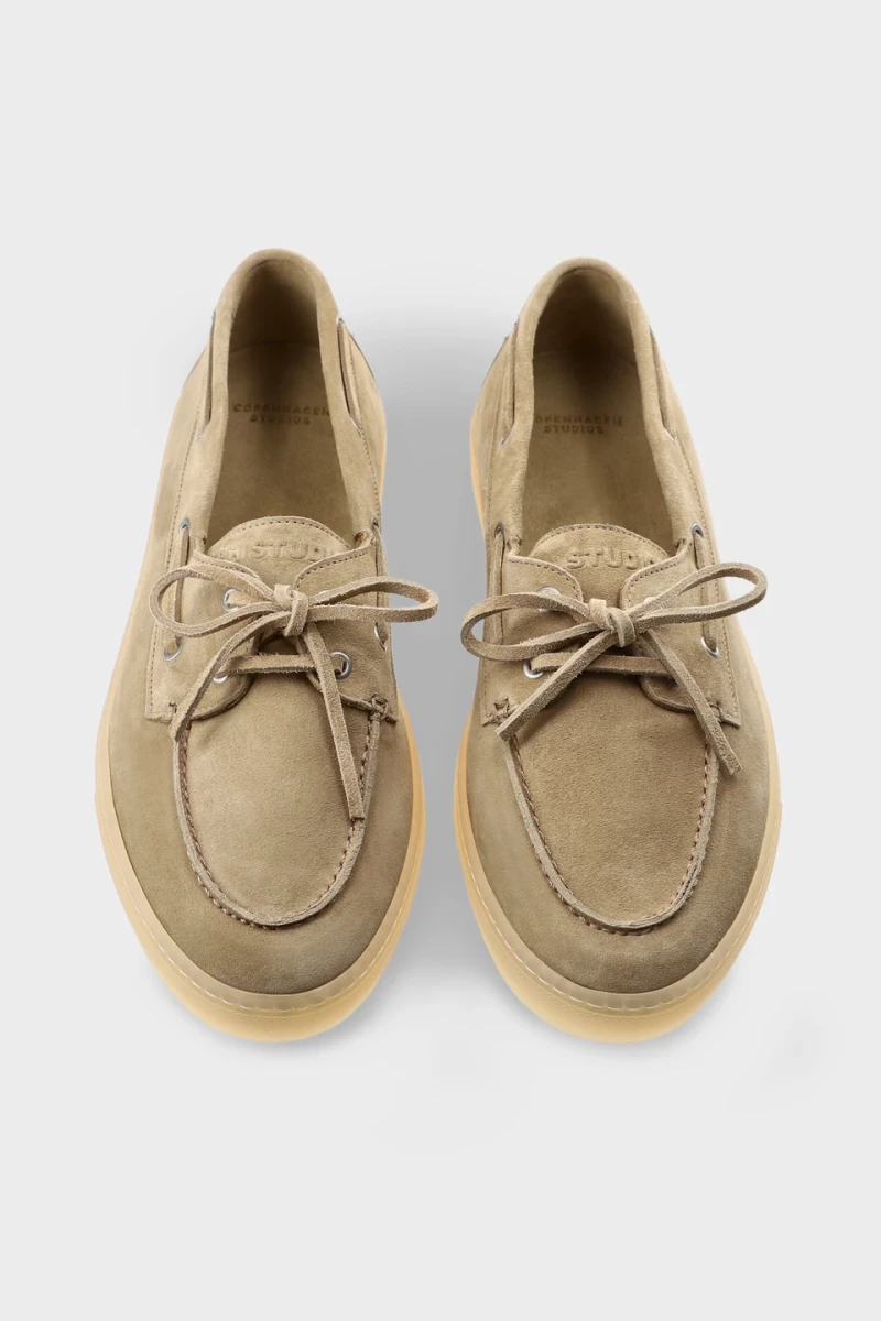 Segelschuhe aus weichem Suede. Entspannte Silhouette. Minimalistische Elemente mit gestickten Details. Erhöhte Naht vorne auf dem Schuh. Logo auf der Schuhzunge und Innensohle. Slip-On-Style. Dekorative Schnürung. Hardware aus Metall. Runde Kappe. Flache, texturierte Sohle. Stilvolle Loafer für einen entspannten Sommer-Look.