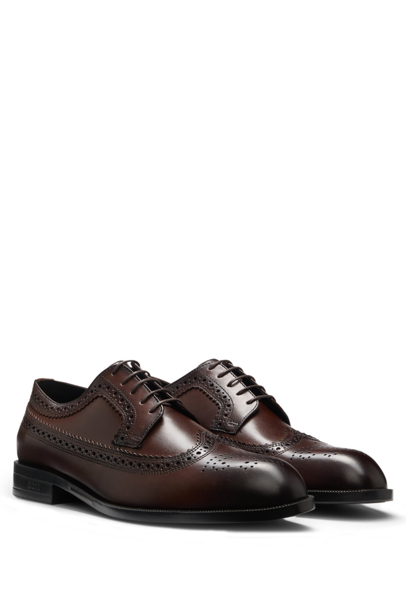 Die BOSS Derbys mit filigranen Budapester-Details runden elegante Looks gekonnt ab. Aus besonders feinem Leder mit strapazierfähiger Sohle. Dieses Produkt enthält mindestens 60 % bessere Rohstoffe. Bei der Herstellung unserer Produkte sind wir immer auf der Suche nach nachhaltigeren Lösungen. Mindestens 60 % des Leders in diesem Produkt stammen aus zertifizierten Gerbereien.