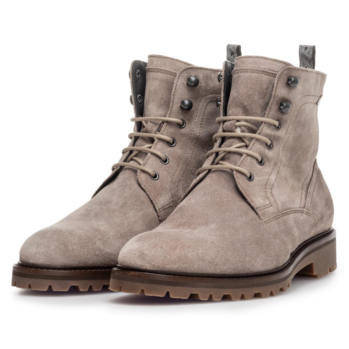 Dieser zeitlose Winterschnürstiefel ist aus hellbraunem Wildleder. Der Stiefel ist komplett mit Lammfell gefüttert. Lammfell macht den Stiefel nicht unbedingt wärmer, es reguliert aber die Temperatur und die Feuchtigkeit. Die Profilsohle besteht aus flexiblem Gummi und ist sowohl im Innen- als auch im Außenbereich sehr praktisch. Der schlanke runde Leisten sorgt für einen jungen und zugleich edlen Look am Fuß. Das Innere des Stiefels besteht aus hochwertigem Kalbsleder. An einem regnerischen Nachmittag hat Floris der klassischen Commando-Profilsohle ein paar kleine Kritzeleien und Zeichnungen hinzugefügt, die nun als Reliefmuster auf dem Gummi zu sehen sind.