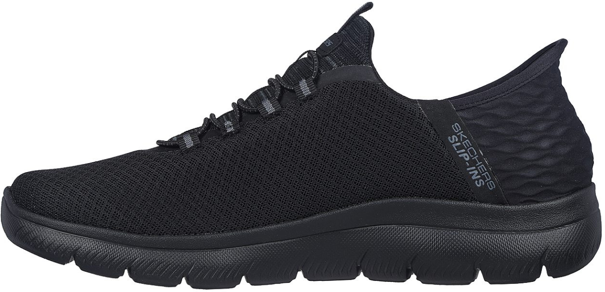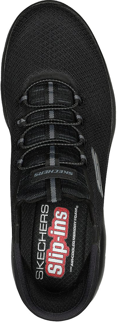 Ultimativer Tragekomfort mit Skechers Hands Free Slip-ins®: Summits - High Range. Dieser vegane Schuh ist mit dem exklusiven Skechers Fersenkissen (Heel Pillow) ausgestattet, das deinen Fuß sicher an Ort und Stelle hält, und verfügt über das einzigartige geformte Slip-Ins™ Fersenpanel, ein Obermaterial aus Mesh mit angedeuteter Schnürung und eine gepolsterte Skechers Air-Cooled Memory Foam-Innensohle.
