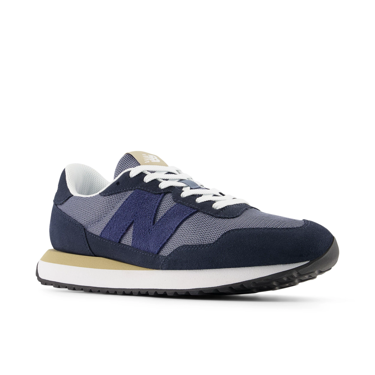 VA-Mittelsohle | Großflächige Riffel-Außensohle mit Text-Branding | Asymmetrische Gummispitze | Sichtbare Schaumstoffzunge | Angewinkelter Text „New Balance“ an der Fersenlasche | Übergroßes N-Logo