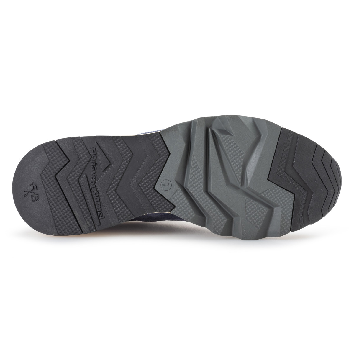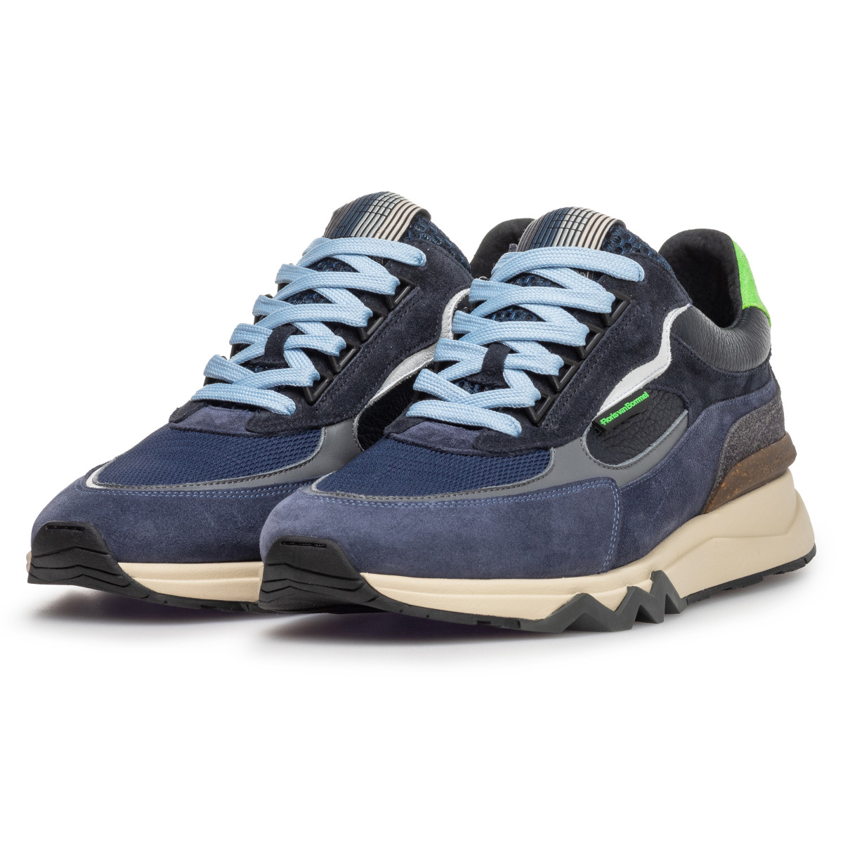 Die im Fersenbereich voluminös gestaltete Sohle von diesem De Zager ("der Säger") verjüngt sich zum Vorderfuß hin, was dem Schuh einen Look sportlicher Schnelligkeit verleiht. Die Sohle besteht aus cremeweißem und besonders leichtem EVA-Material. Die Lauffläche aus Die im Fersenbereich voluminös gestaltete Sohle verjüngt sich zum Vorderfuß hin, was dem Sneaker einen Look sportlicher Schnelligkeit verleiht. Die Sohle besteht aus besonders leichtem EVA-Material. Die Lauffläche aus strapazierfähigem TPU ist mit der für Floris van Bommel typischen grauen Zickzacklinie versehen. Das Innenleben des Sneakers ist mit einem hochwertigen Lederfutter und einem herausnehmbaren Fußbett ausgestattet. Diese Variante besteht aus einem schönen Mix aus Materialien und Farben.