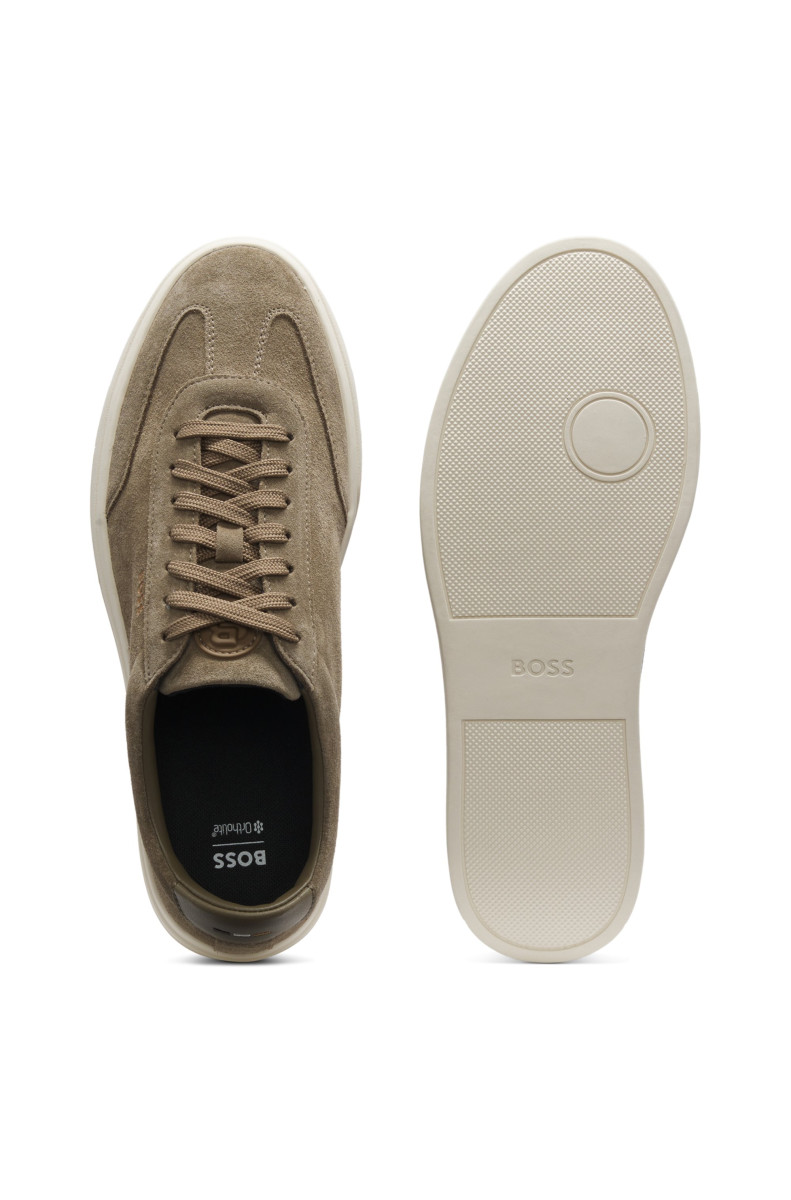 Gefertigt aus hochwertigem Veloursleder mit glatten Lederbesätzen verleihen diese BOSS Menswear Sneaker jedem Outfit eine lässige Note. Dezente Logo-Details. Robuste Gummilaufsohle. Dieses Produkt besteht zu mindestens 80 % aus nachhaltigeren Rohmaterialien. Das für dieses Produkt verwendete Leder stammt aus zertifizierten Gerbereien.