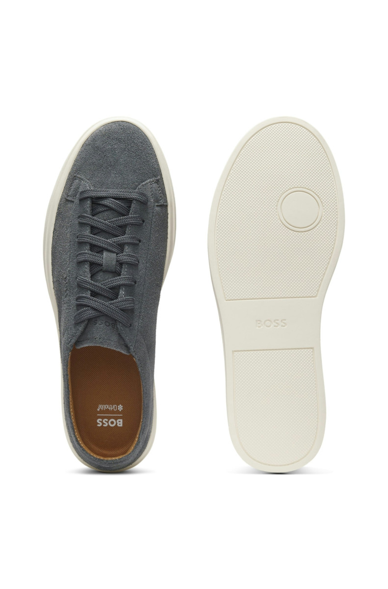 Die BOSS Sneaker aus hochwertigem Veloursleder sind auf einer strapazierfähigen Gummisohle gesetzt. Dezentes geprägtes Logo-Detail. Niedriges Profil. Dieses Produkt enthält mindestens 80 % bessere Rohstoffe. Das Leder in diesem Produkt stammt aus zertifizierten Gerbereien.