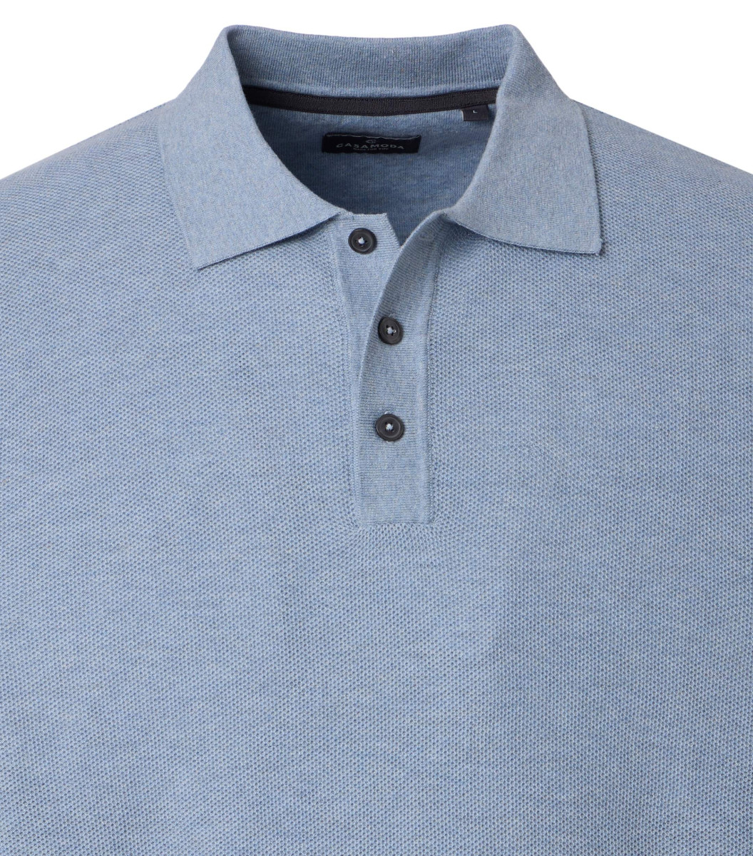 Ein besonderes Merkmal dieses Modells ist der klassische Polokragen, der durch eine kurze Knopfleiste mit kontrastierenden Knöpfen ergänzt wird. Diese Details ermöglichen eine individuelle Anpassung des Ausschnitts und unterstreichen den gepflegten Casual-Look. Elastische Rippbündchen an den Ärmeln und am Saum sorgen für einen perfekten Sitz und verhindern das Verrutschen, während der gerade Schnitt ausreichend Bewegungsfreiheit garantiert.