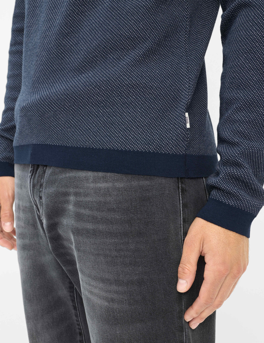 Das Langarmshirt im STYLE PAROS ist der ideale Begleiter für die kühleren Tage der Herbst- und Wintersaison. Mit seinem klassisch-maskulinen Stil bietet dieses langärmelige Polo eine gerade Silhouette, die für eine zeitlose und zugleich komfortable Passform sorgt. Der dezente Jacquard-Effekt des Stoffes verleiht dem Design eine subtile Struktur, die dem Shirt eine elegante Note verleiht. Die durchdachten Details, wie die praktische Knopfleiste und die aufgesetzte Brusttasche, unterstreichen die funktionale Ästhetik und machen es zu einem vielseitigen Kleidungsstück für unterschiedliche Gelegenheiten. Gefertigt aus einer hochwertigen Mischung aus Baumwolle und Modal, kombiniert der Stoff die besten Eigenschaften beider Materialien: Baumwolle bietet Atmungsaktivität und Strapazierfähigkeit, während Modal für seine weiche Haptik und den seidigen Griff bekannt ist. In hochwertiger Strickjersey-Qualität bekommt der Sommer-Klassiker ein neues Gesicht und vereint softes Handfeel mit moderner Optik, ist dabei atmungsaktiv, pflegeleicht und langlebig. Ein besonderes Detail: die angestrickten Bündchen an Saum und Ärmeln, die stilistisch den Charakter eines Pullovers haben und dem Look eine lässig-sportive Note verleihen. Als Jacquard bietet das Langarmshirt nicht nur optische Raffinesse, sondern auch eine exzellente Formstabilität, sodass es sich perfekt an die Bedürfnisse moderner Herren anpasst, die Wert auf Stil und Komfort legen.