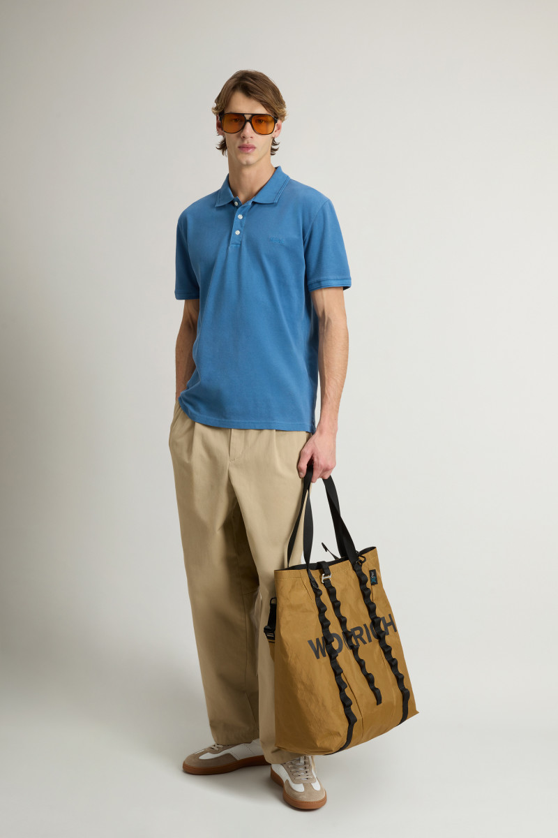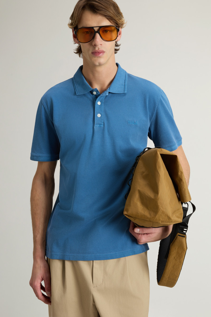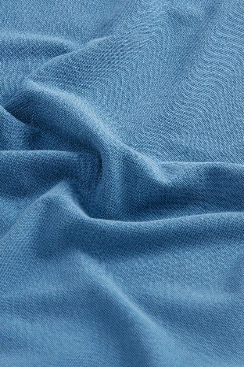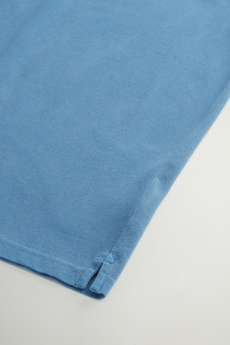 Aus Stretch-Baumwollpikee | Stückgefärbt | Einzigartige Verarbeitung | Gerippter Kragen mit zwei Knöpfen | Einsatz aus Baumwollpopeline auf der Rückseite und Knopfleiste | Kurzärmelig | Gerippte Bündchen | Seitenschlitze am Saum | Aufgesticktes Logo auf der Brust