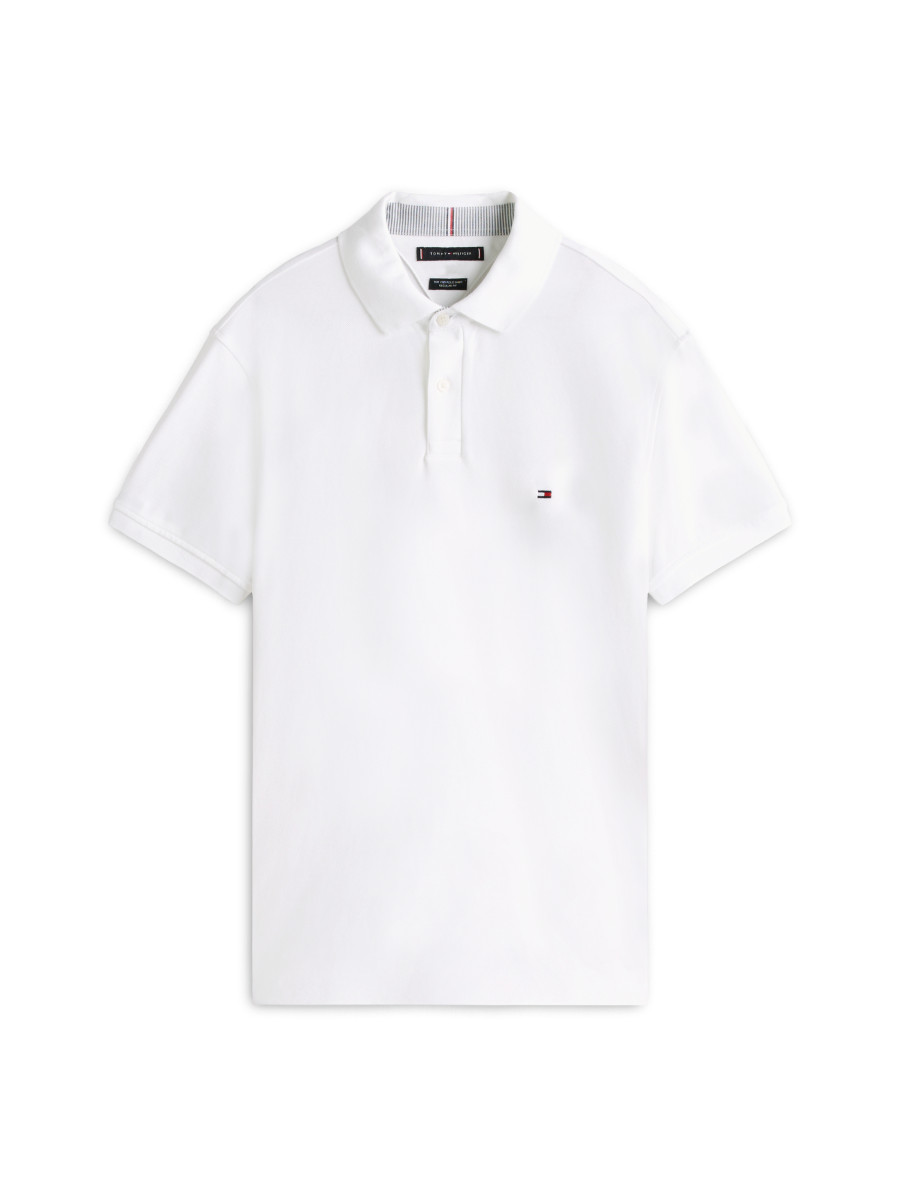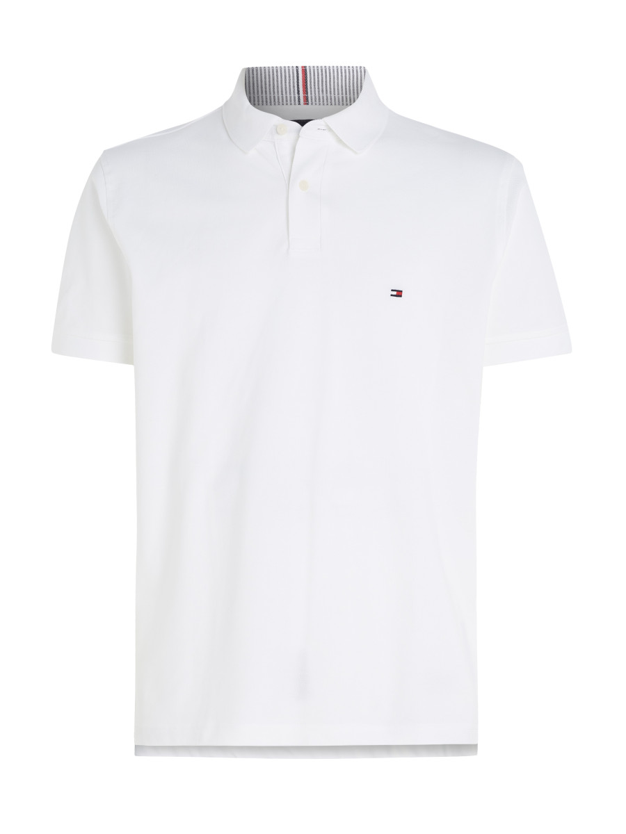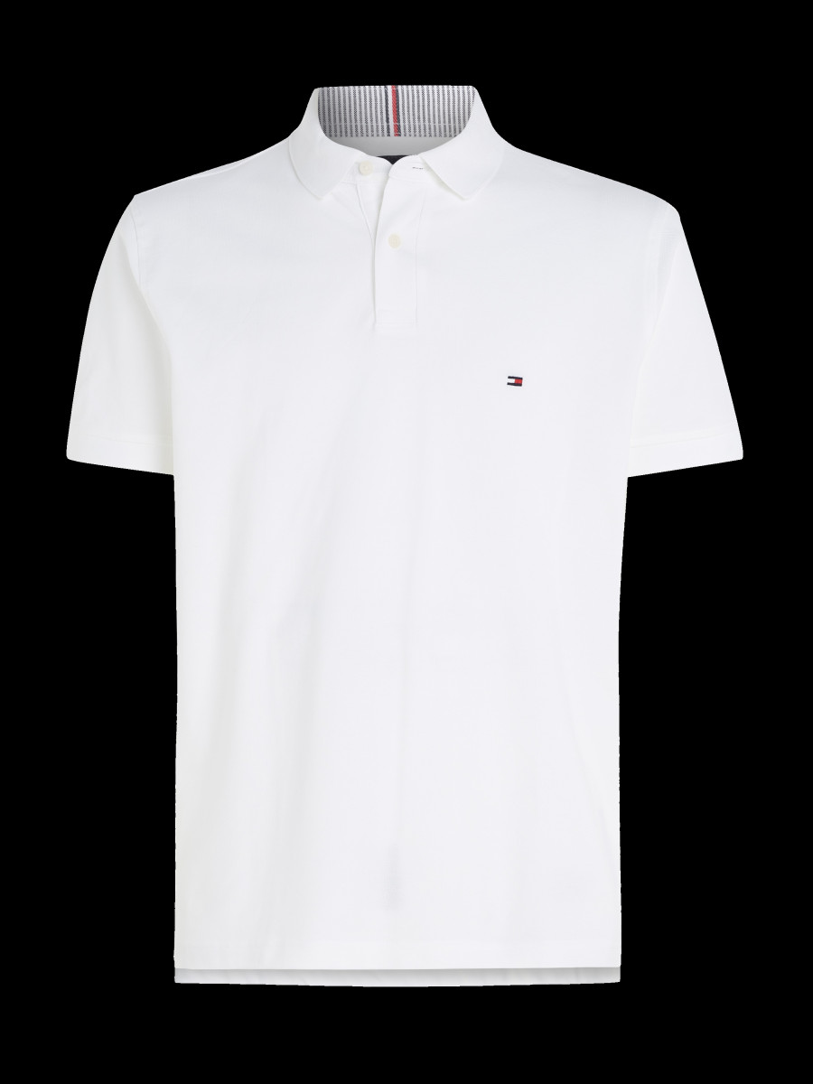 Herren Poloshirt Polokragen Knopfleiste mit zwei Knöpfen Tommy Hilfiger-Branding Tommy Hilfiger Flag-Stickerei auf Brust Stretch-Piqué aus Bio-Baumwolle Regular Fit