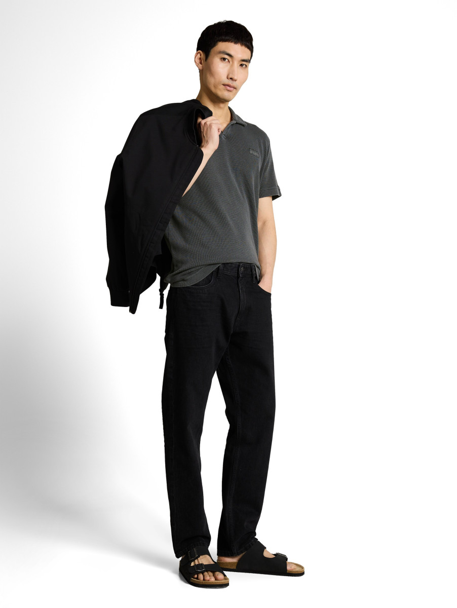 Polohemd mit Logo-Label auf der Brust und Garment-Dye-Effekt in gewaschener Optik. Aus einem strukturierten Stoff in Waffel-Optik.Lief.-Art-Nr: 1050198