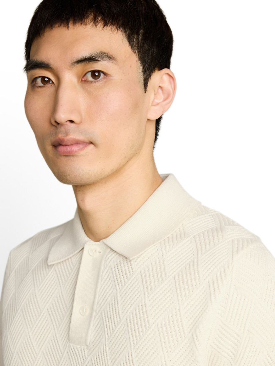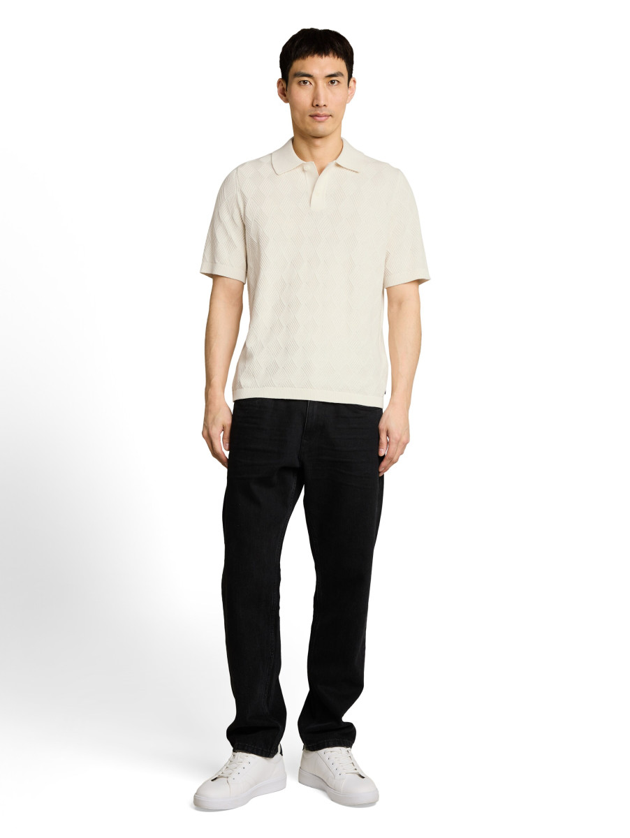Kurzärmliger Pullover mit Polokragen und halber Knopfleiste. Aus einem strukturierten Baumwollstoff.Lief.-Art-Nr: 1050758