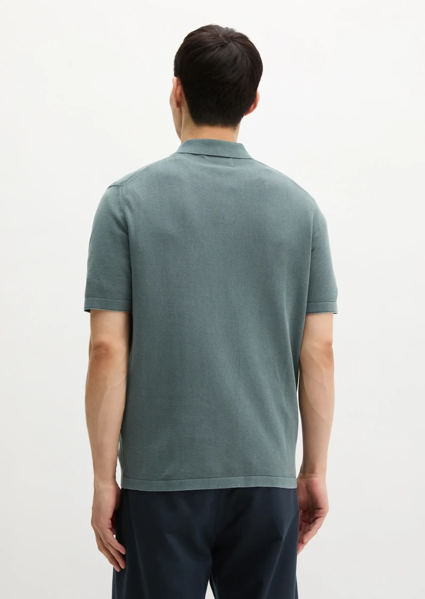 Zeitloses Strick-Poloshirt aus reiner Bio-Baumwolle in feiner Strick-Qualität mit kompakter Oberfläche. Durch das Garment-Dye-Verfahren erhält jedes Teil seinen individuellen Farbton und eine weiche Haptik. Mit Flachstrickkragen, kurzer Knopfleiste und abgesetzten Bündchen an Ärmeln und Saum. Eine dezente Logo-Stickerei auf der Brust rundet das Design ab.