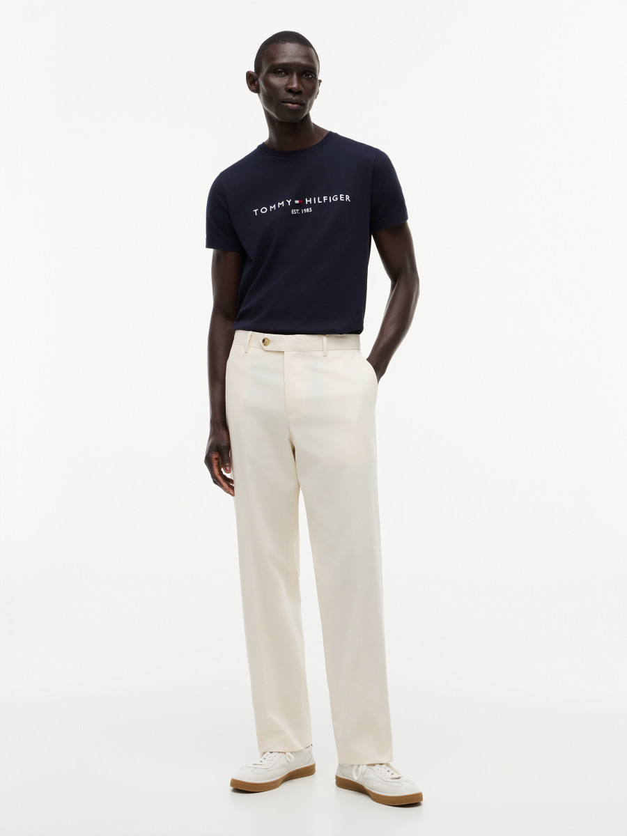 Regular Fit | Reiner Bio-Baumwolljersey | Rundhalsausschnitt | Aufgesetzte Tommy-Streifen an Kragen | Tommy Hilfiger-Logo auf Brust | Aufgestickte Tommy Hilfiger Flag an Ärmel