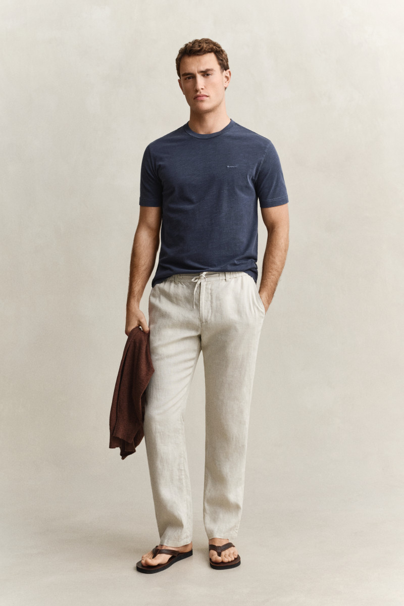 Regular Fit | Gerippter Rundhalsausschnitt | Gant-Logostickerei auf der Brust | Verwaschene Optik