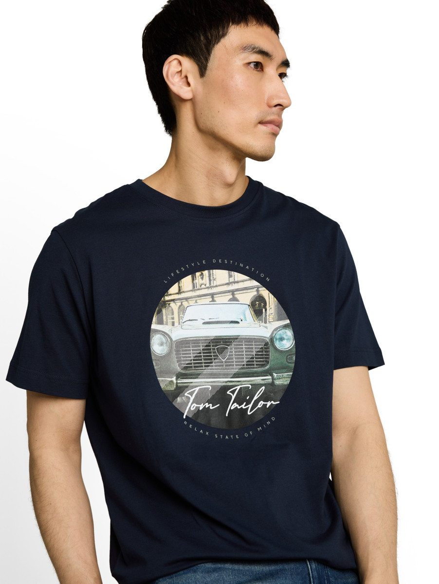Unifarbenes T-Shirt mit Fotoprint auf der Vorderseite, das einen modernen und lässigen Look verleiht. Der weiche Single-Jersey aus Baumwolle sorgt für angenehmen Tragekomfort und eine leichte Passform. Ein vielseitiges Herren T-Shirt, das sich gut zu Jeans und Sneakern kombinieren lässt.Lief.-Art-Nr: 1050208