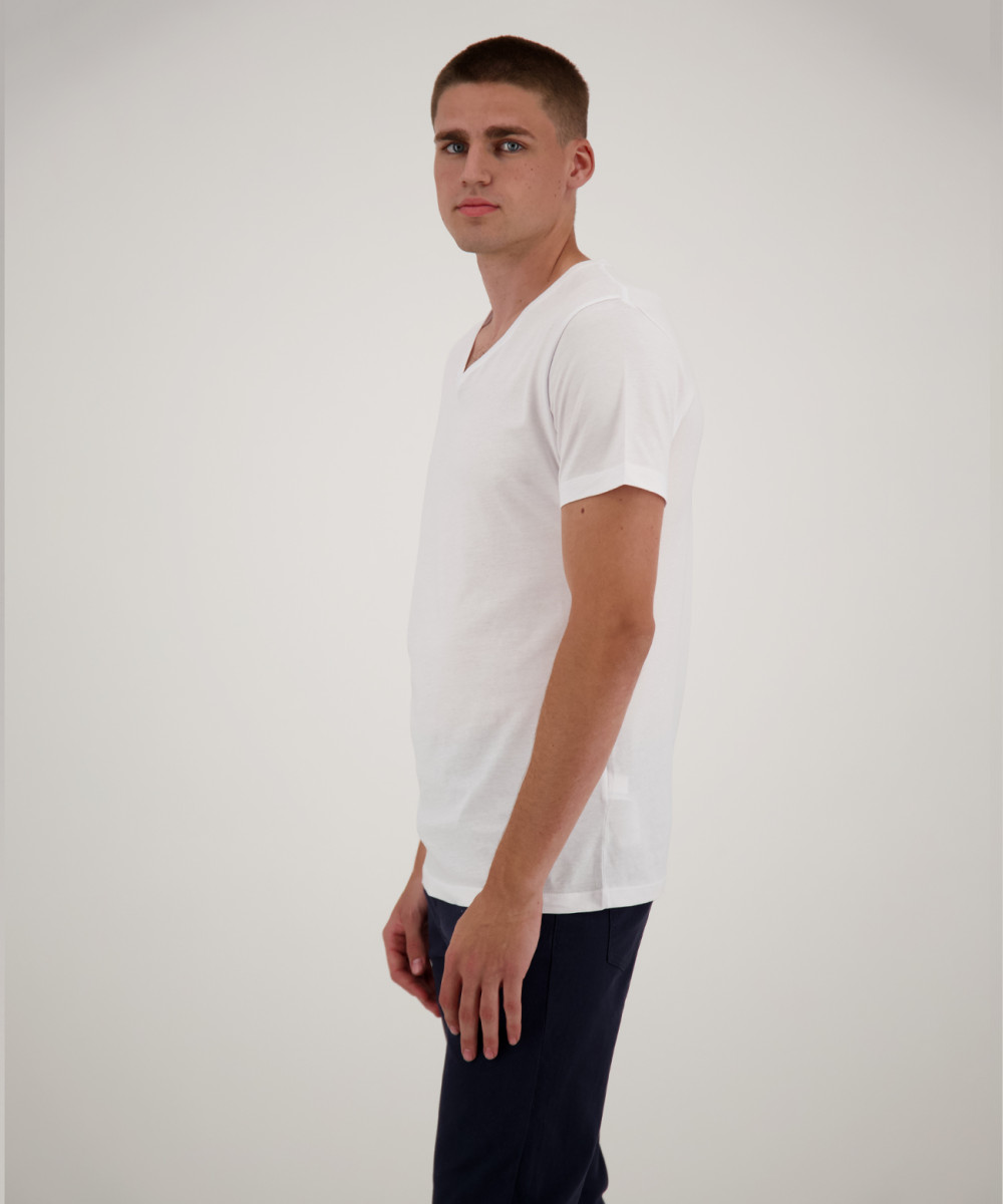 V-Ausschnitt | Bodyfit | Rippbündchen am Kragen | Verstärkte Nacken- und Schulternaht | Reine Baumwolle