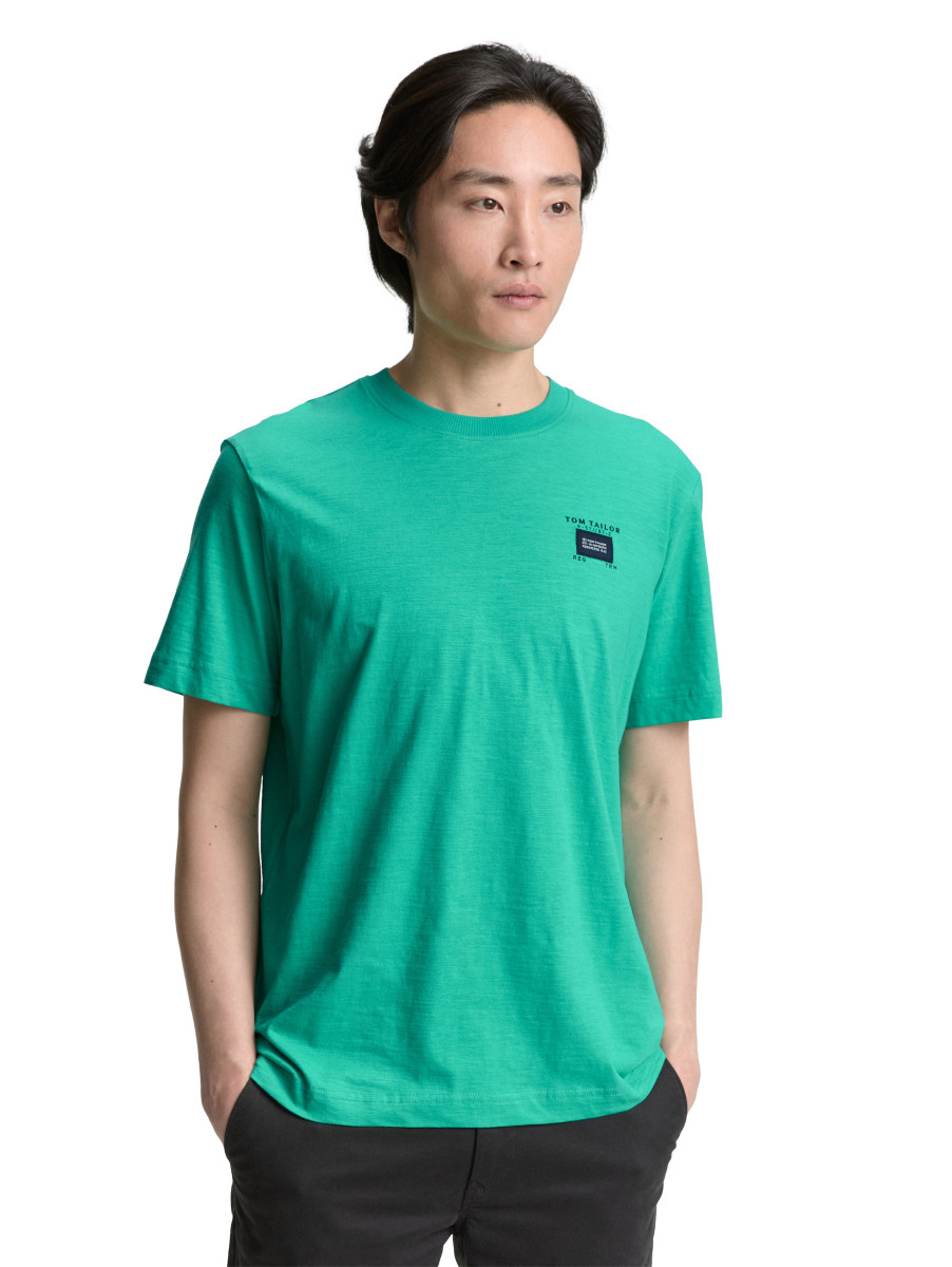 Meliertes T-Shirt mit kleinem Logo-Label auf der Brust. Aus einem Slub-Jersey-Stoff aus Baumwolle.