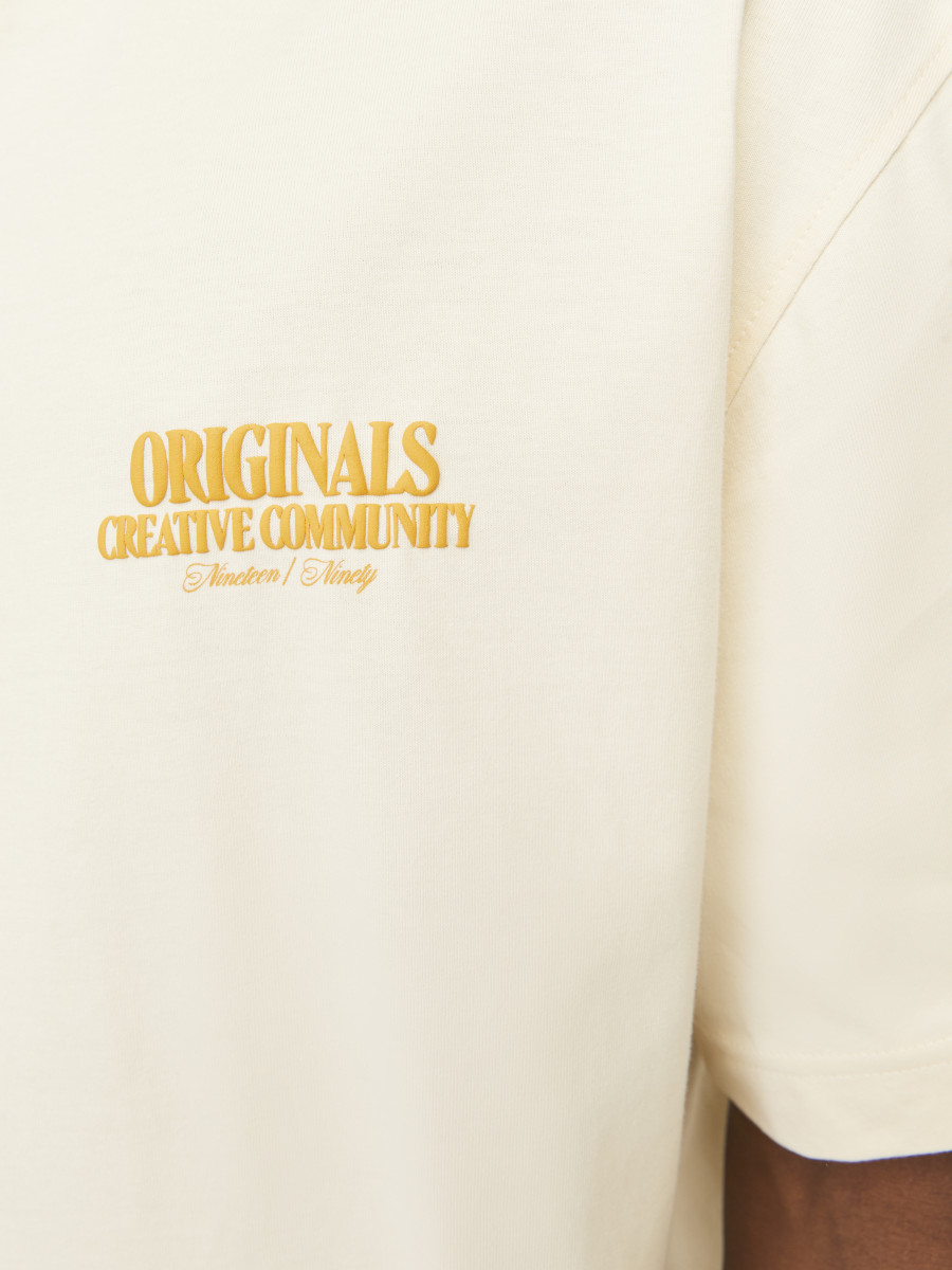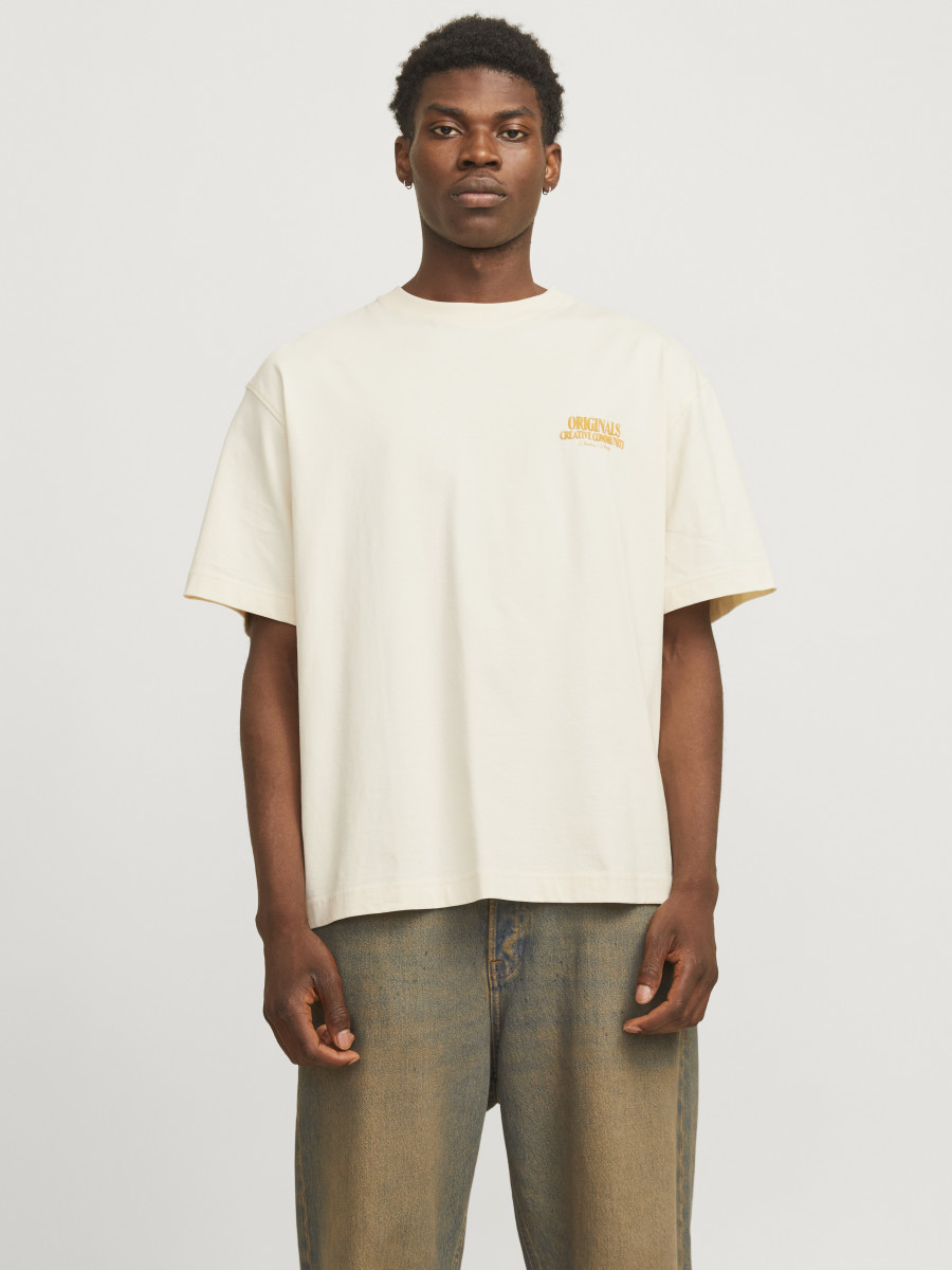 Nichts ist so unkompliziert wie ein T-Shirt. Es passt einfach zu allem in deinem Kleiderschrank. Gekämmtes Jerseygewebe ist dehnbar, fühlt sich weich an und ist perfekt für den Alltag. - Produkttyp : T-shirt - Hals : Rundhalsausschnitt - Ärmel : Kurzarm - Print : Muster auf der Rückseite des Produkts, Gummidruck für Weichheit - Passform : Weit geschnitten