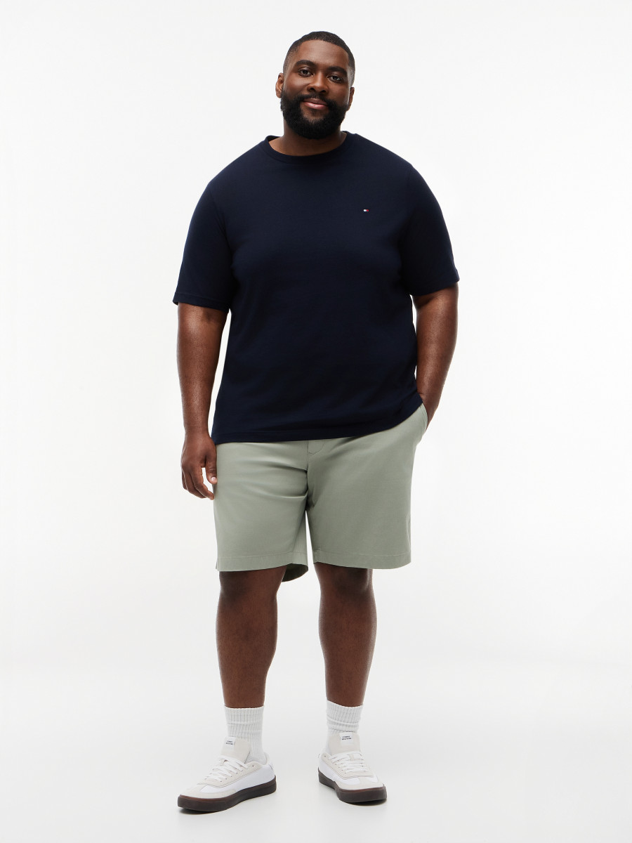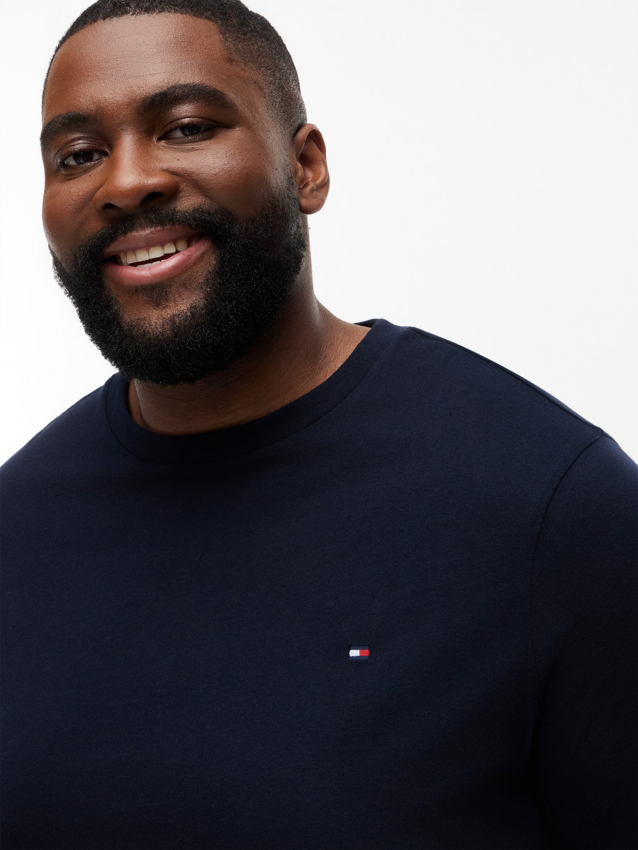 Das Tommy Hilfiger Plus T-Shirt aus 100 % Baumwolle bietet mit seinem Regular Fit und dem klassischen Rundhalsausschnitt hohen Tragekomfort. Die Brust ziert das ikonische Flag-Logo, das für den typischen Tommy-Stil steht. Dieses T-Shirt ist vielseitig kombinierbar und eignet sich ideal für legere Alltagslooks oder als Basic unter Jacken und Hemden.