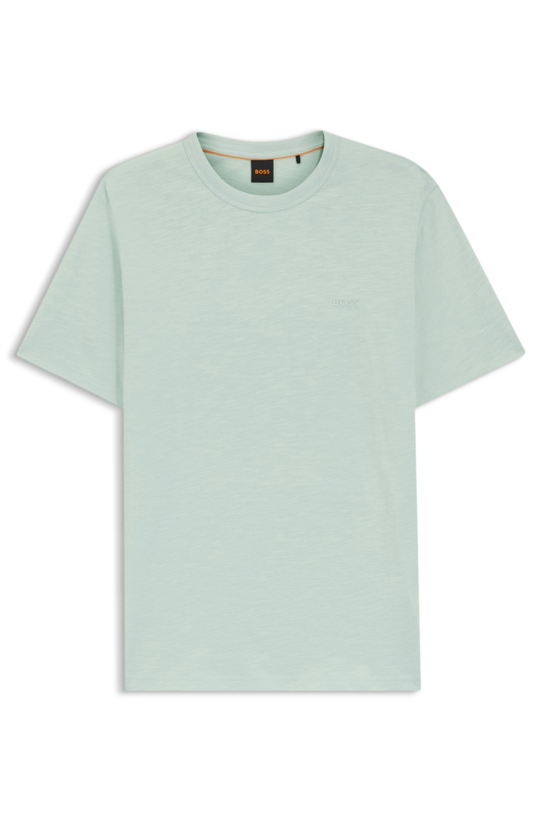 An essential T-shirt by BOSS Menswear. Featuring a logo at the left chest, this regular-fit top is crafted in soft slub-cotton jersey.