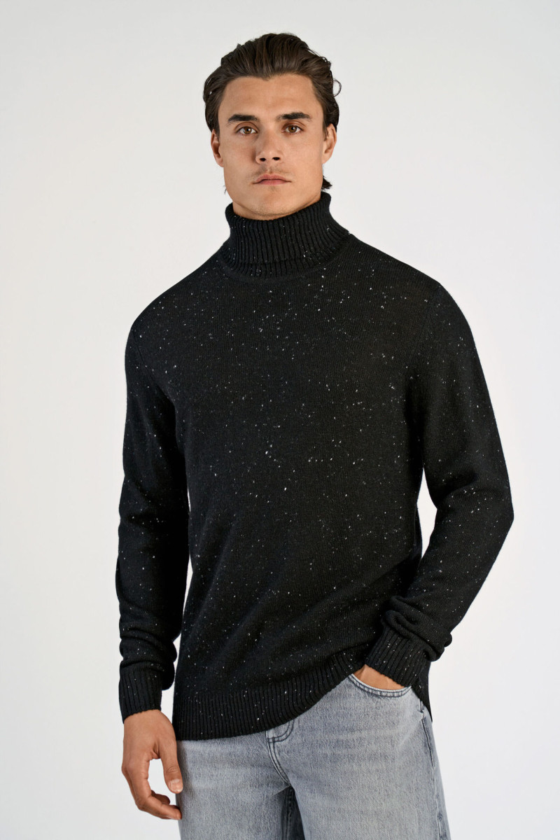 Rollkragen | Langarm | Rippbündchen | Material-Mix | Relaxed-Fit