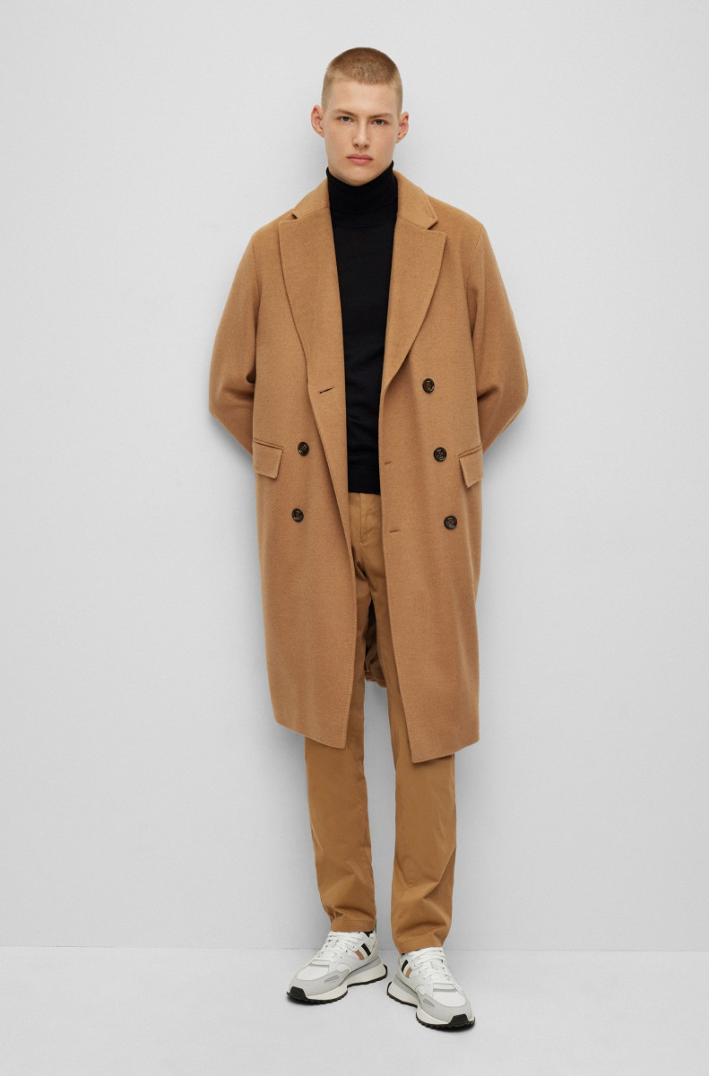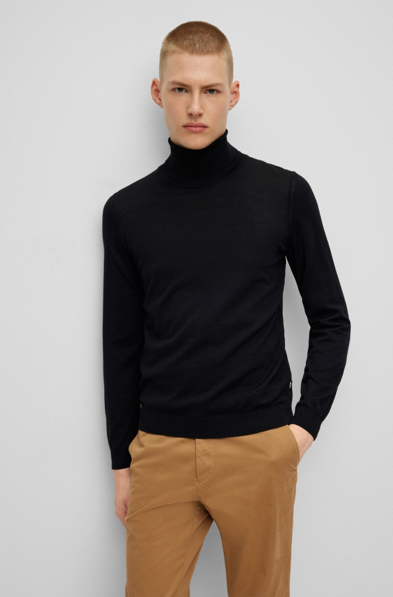 Ideal für jede Jahreszeit: der schmal geschnittene BOSS Pullover aus atmungsaktiver Schurwolle. Der Herren-Pullover mit Rollkragen ist mit einem Logo-Fähnchen versehen. Strukturierte Details an den Seitennähten runden das Design ab. Für unsere RESPONSIBLE Produkte verwenden wir immer mindestens 60 % nachhaltigere Rohmaterialien. Dieses Produkt besteht aus mindestens 60 % nachhaltiger gewonnener und zertifizierter Wolle. Nachhaltigere Wolle bedeutet für HUGO BOSS, dass das Material die Standards der Fünf Freiheiten des Tierwohls einhält.
