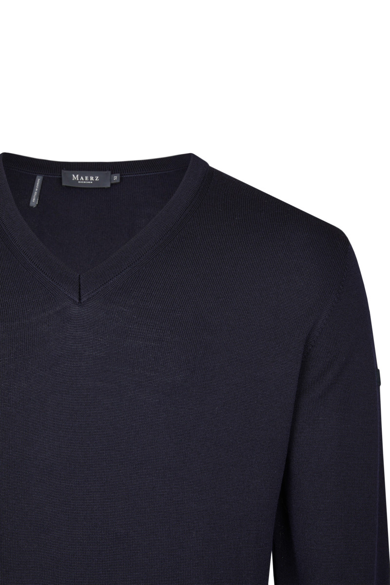 Cleanes Design trifft auf hochwertige Merinowolle! Pullover mit V-Ausschnitt im Classic Fit - ein Klassiker für jeden Tag. Material: Merinowolle hat einen hohen Tragekomfort, ist feuchtigkeitsregulierend, geruchsneutral und besitzt eine wärmende sowie temperaturausgleichende Funktion. Haptik: cleanes, klassisches Maschenbild mit weichem Wollgriff. Tragefühl: leicht und angenehm wärmend. Hochwertige Verarbeitung mit handgekettelten Nähten und elastischen Bündchen.