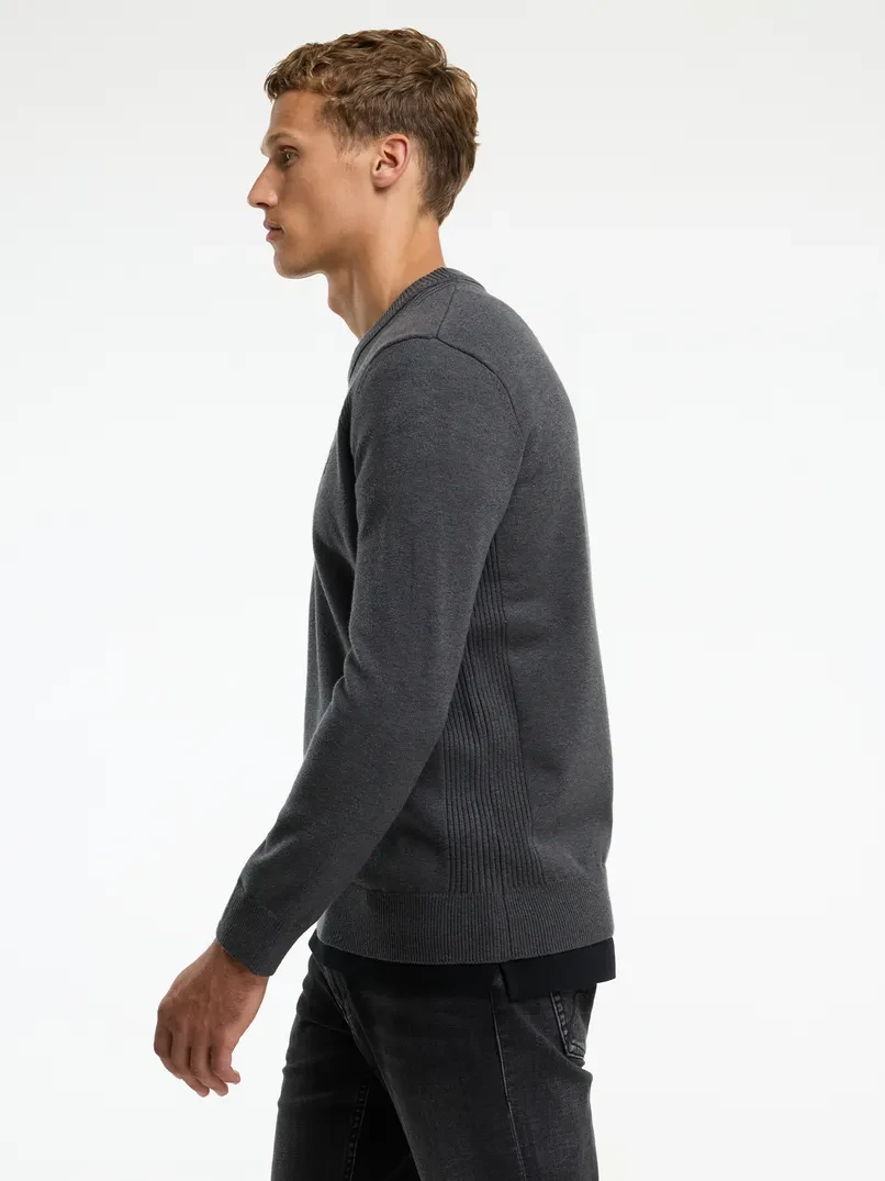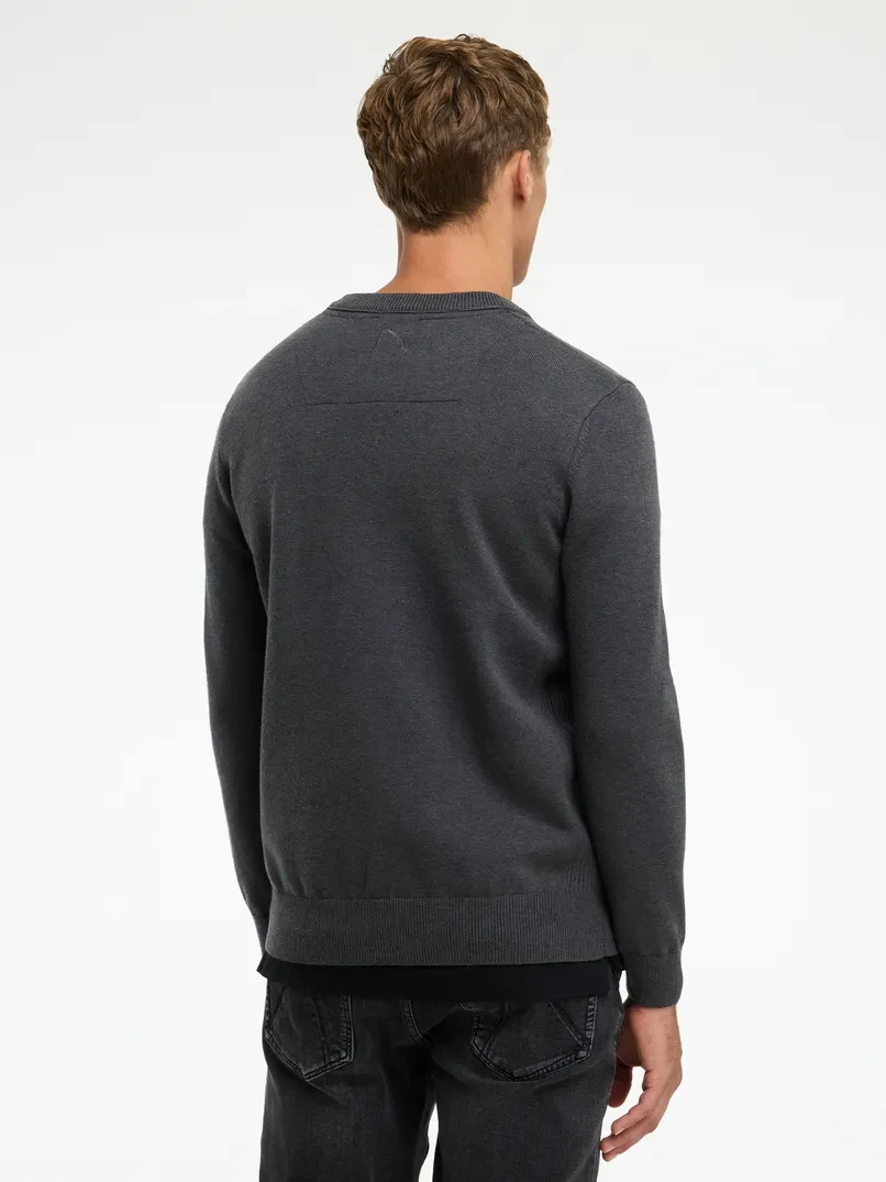 Der Finn Wool ist ein Regular-Fit-Pullover mit Rundhalsausschnitt und gerippten Bündchen. Versehen mit einem CHASIN'-Komma-Badge auf der Brust.