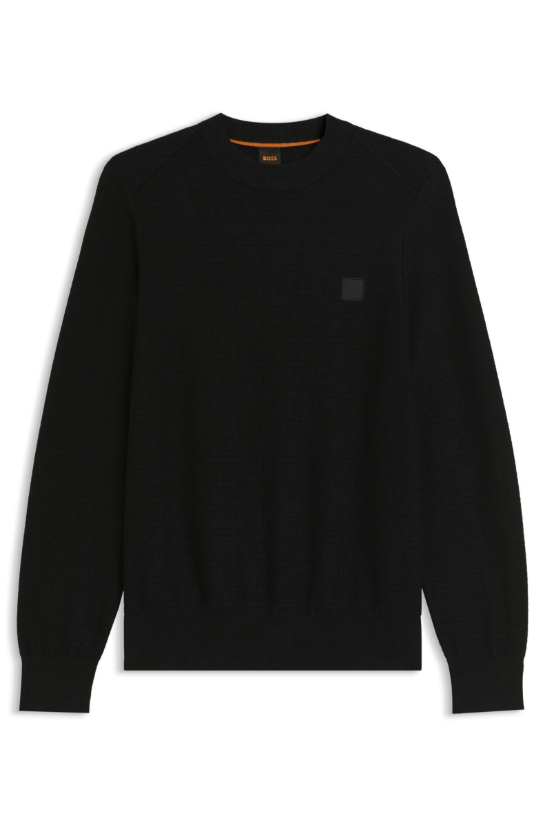 Gerade geschnittener BOSS Pullover mit Logo-Aufnäher. Der Layer aus einem Baumwoll-Mix mit Kaschmir-Anteil ist durchgehend mit einer feinen Struktur gestrickt. Dieses Produkt wird teilweise mit Bio-Baumwolle gefertigt. Unsere Bio-Standards erlauben keine Verwendung von synthetischen Düngemitteln, Pestiziden oder gentechnisch verändertem Saatgut.