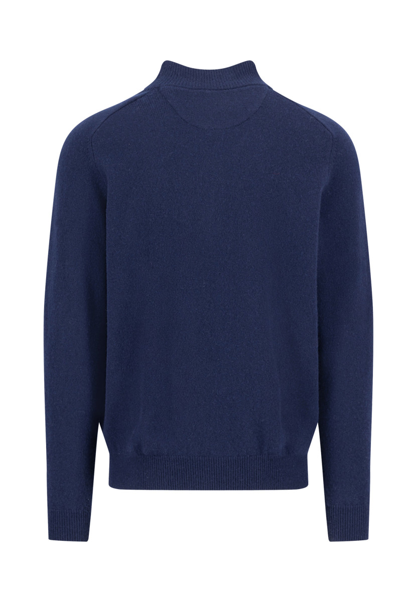 Dieser klassische Herrenpullover mit halbem Reißverschluss ist ein vielseitiges Essential für die anspruchsvolle Herrengarderobe. Gefertigt aus einem hochwertigen, weichen Strickmaterial, bietet er exzellenten Tragekomfort und eine angenehme Wärme. Der Stehkragen mit kurzem Zipper verleiht dem Pullover eine sportlich-elegante Note und ermöglicht eine individuelle Anpassung der Wärme und des Looks. Das dezente Design wird durch ein kleines, gesticktes Logo auf der Brust ergänzt, das die Markenqualität subtil hervorhebt. Gerippte Bündchen an Ärmeln und Saum sorgen für eine optimale Passform und Formstabilität. Dieser Half-Zip-Pullover ist perfekt für den Lagen-Look, passt hervorragend zu Hemden oder kann solo getragen werden und ist ideal für Freizeit, Büro oder den sportlichen Casual-Look. Ein zeitloser Klassiker, der in keiner Kollektion fehlen sollte.