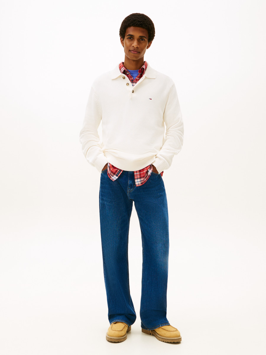 Das Design besticht durch ein strukturiertes Strickmuster, das dem Material eine interessante Tiefe und Haptik verleiht. Der charakteristische Polo-Kragen und die Knopfleiste mit kontrastierenden Knöpfen setzen elegante Akzente. Die reguläre Passform und das weiche Strickmaterial sorgen für hohen Tragekomfort und Wärme, was diesen Pullover zu einem idealen Layering-Stück macht. Am Saum und an den Ärmelabschlüssen sorgen breite Rippstrickbündchen für einen sauberen Abschluss und eine gute Formbeständigkeit. Ein kleines, gesticktes Logo auf der Brust unterstreicht die Markenidentität auf dezente Weise. Dieses vielseitige Oberteil ist perfekt geeignet, um sowohl einen smarten Business-Casual-Look als auch ein gehobenes Freizeit-Outfit stilvoll zu ergänzen.