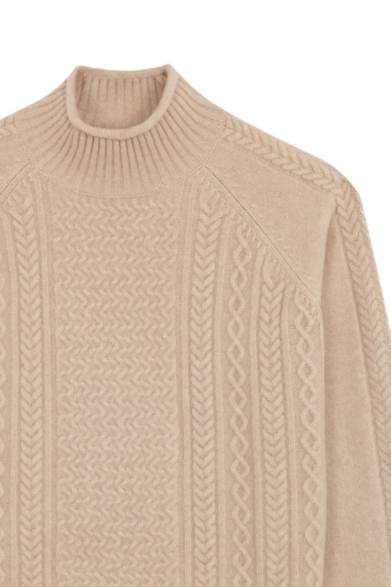 Dieser Pullover ist aus einem Garnmix gefertigt, der sich superweich anfühlt und eine bequeme Passform bietet. Er ist in einer regulären Passform designt und verfügt über Raglanärmel, einen Stehkragen mit kleinen Rollkanten sowie Rippbündchen am Saum, an den Ärmelabschlüssen und am Kragen.