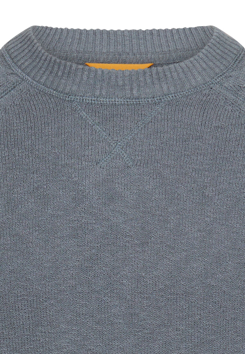Dieser Pullover zeichnet sich durch seinen zeitgemäßen, entspannten Look und den angenehmen Tragekomfort aus. Der klassische Rundhalsausschnitt ist mit einem kleinen V-Detail am Kragen versehen, was dem Design eine subtile sportliche Note verleiht.