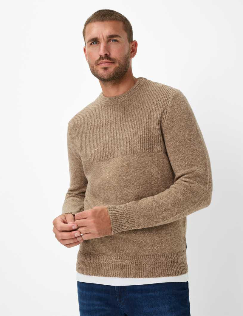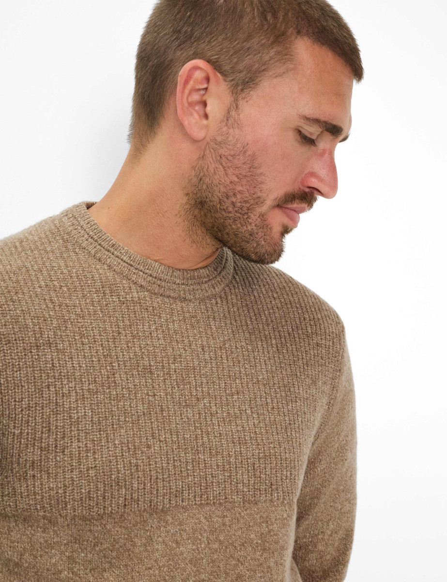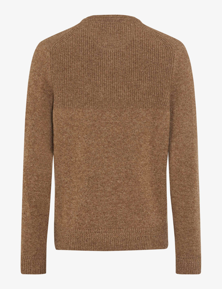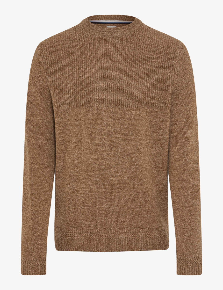 Mit seinem klaren Design und der hochwertigen Strickstruktur ist der Pullover im Style Rick der perfekte Begleiter für stilvolle Everyday-Looks mit Anspruch. Die feinmaschige Jersey-Knit-Verarbeitung bringt eine dezente Textur ins Spiel, während die klassische Rundhalssilhouette für zeitlose Lässigkeit sorgt. Der gerade Schnitt mit formstabilem Bündchen an Saum und Ärmeln unterstreicht den gepflegten Charakter und macht den Pullover zu einem vielseitigen Essential für den modernen Herrenkleiderschrank. Der Herrenpullover überzeugt nicht nur optisch, sondern auch durch seine edle Materialmischung: Gefertigt aus Wolle und Polyamid, vereint er die wärmenden, atmungsaktiven Eigenschaften von Lambswool mit der Strapazierfähigkeit synthetischer Fasern. Die Mouliné-Optik verleiht dem Strickbild eine lebendige Tiefe – ein subtiler Twist, der den Look aufwertet, ohne laut zu sein.