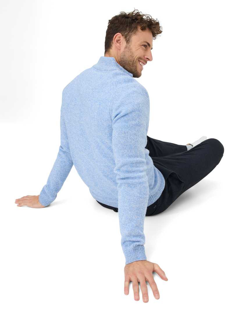 Männermode auf höchstem Niveau: Der Strickpullover im Style STEFFEN ist ein Must-Have im Winter, das Komfort und maskulinen Stil gekonnt interpretiert. Die markante Troyer-Form, geprägt vom sportiven Reißverschluss und dem hohen Kragen, sorgt an kühleren Tagen für angenehme Wärme im modernen Look. Die besondere Mouliné-Optik bringt durch ihre fein melierte Struktur eine lebendige Tiefe ins Design und unterstreicht die lässige Eleganz. Harmonisch fügt sich die hochwertige Materialwahl ins Gesamtbild: Der spürbar weiche Lambswool-Mix schmiegt sich sanft an und bietet dank seiner natürlichen Eigenschaften nicht nur angenehme Wärme, sondern überzeugt auch durch Formbeständigkeit und Langlebigkeit. Als Knitted Jersey präsentiert sich dieser Herrenpullover in einer besonders soften, gepflegten Strickqualität.