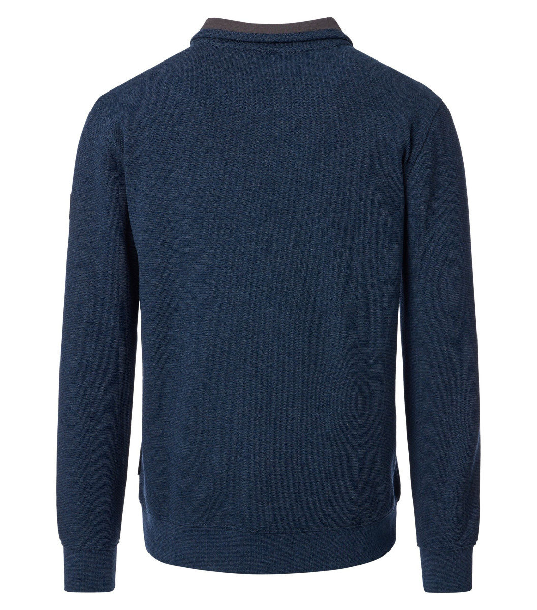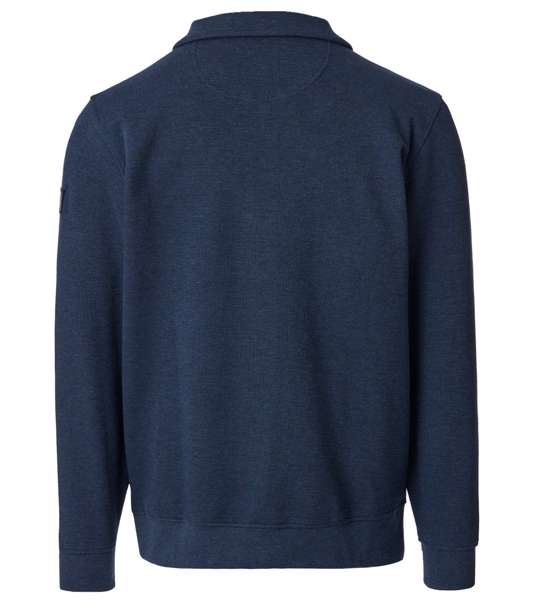 Ein halber Reißverschluss am Kragen, auch Half-Zip genannt, bietet die Möglichkeit, den Look anzupassen und bei Bedarf zusätzliche Belüftung zu schaffen. Der Kragen selbst ist in einer kontrastierenden, dunkleren Nuance gehalten, was einen modernen Akzent setzt und den sportiven Charakter unterstreicht.