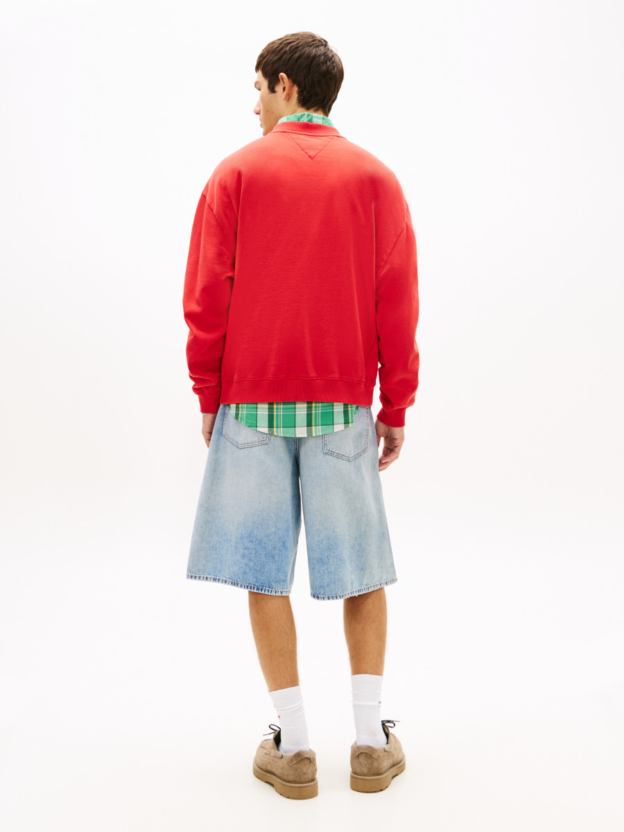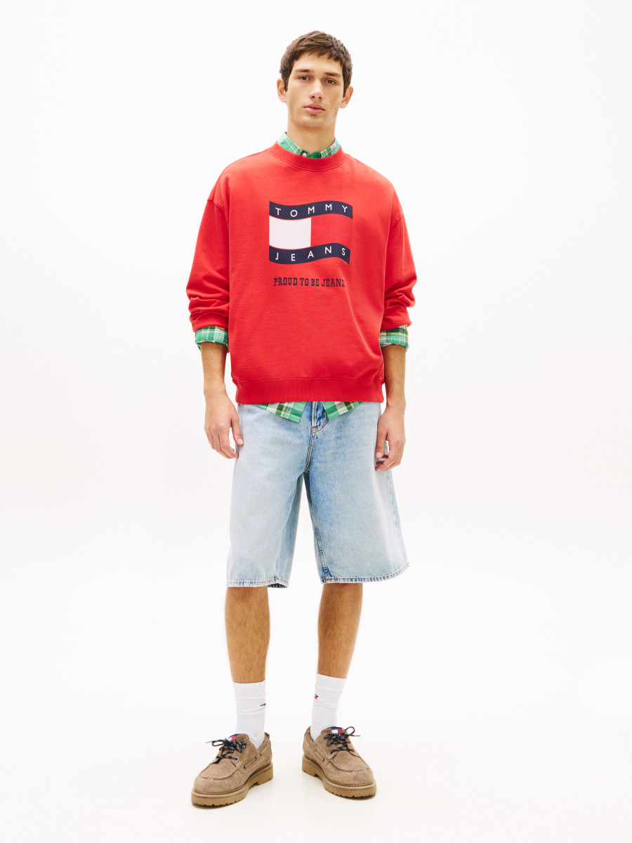 Dieses Herren Sweatshirt kombiniert ein retro-inspiriertes Design mit einem entspannten, regelmäßigen Sitz. Es besteht aus reiner Baumwoll-Frottee und verfügt über eine gerippte Halsblende sowie Bündchen und Saum für Komfort und Formstabilität. Ein wellenförmiges Flaggen-Logo auf der Brust verleiht dem Modell einen nostalgischen Akzent.Lief.-Art-Nr: DM0DM22689/TJM 90S WAVY FLAG CREW EXT