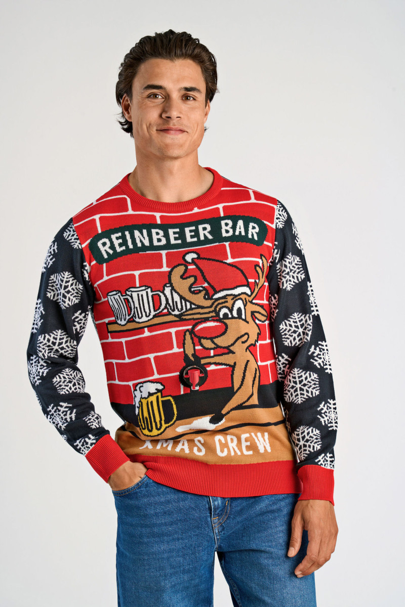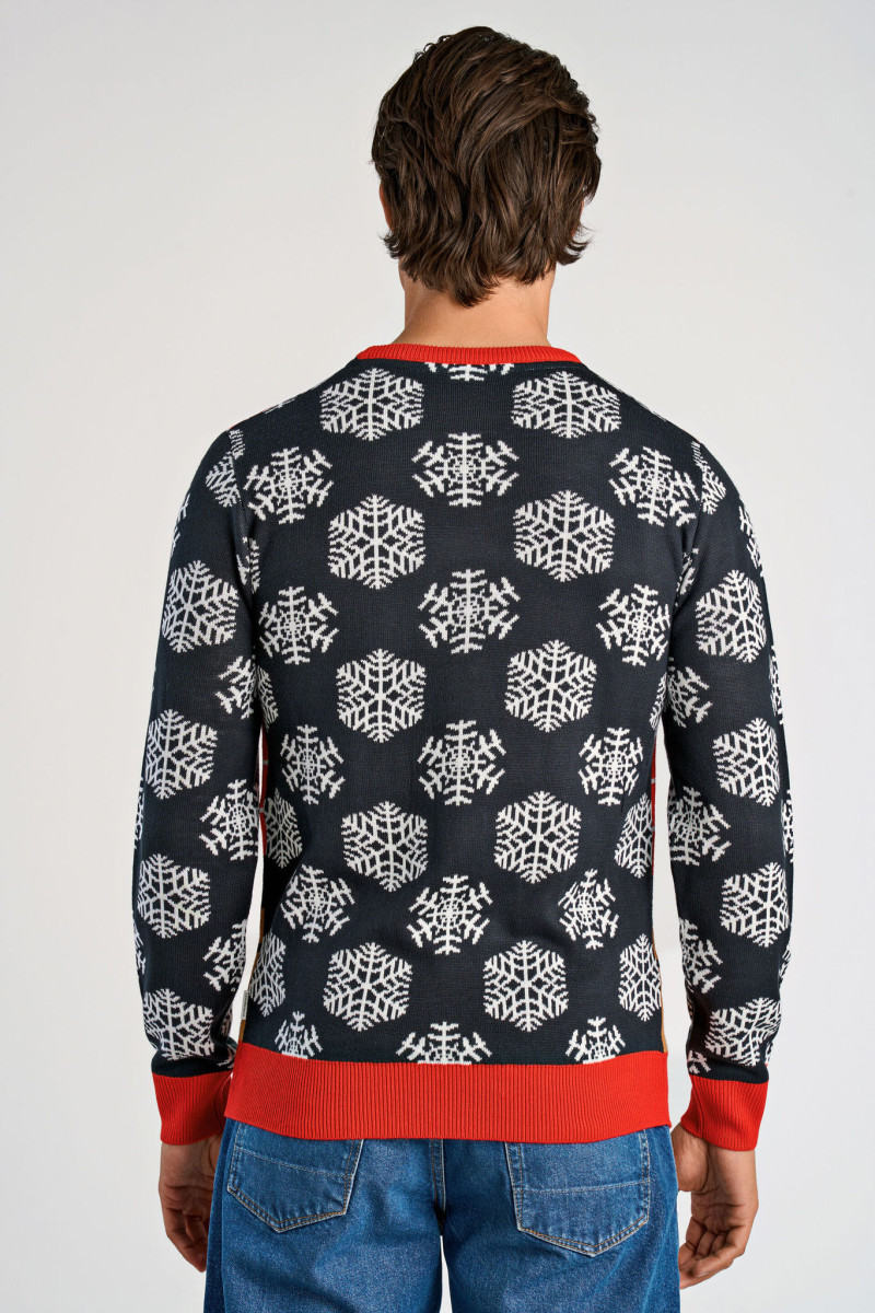 Gestrickter Weihnachtspullover von Lindbergh White. Der Pullover verfügt über einen Klettverschluss auf der Vorder- und Rückseite und wird mit Klettverschlussbällen geliefert, die für unterhaltsame Spiele verwendet werden können. Der untere Teil des Pullovers und der Ärmel sind mit Rippenstrick versehen. Relaxed Fit ist etwas enger als Regular Fit, bietet aber immer noch viel Bewegungsfreiheit.