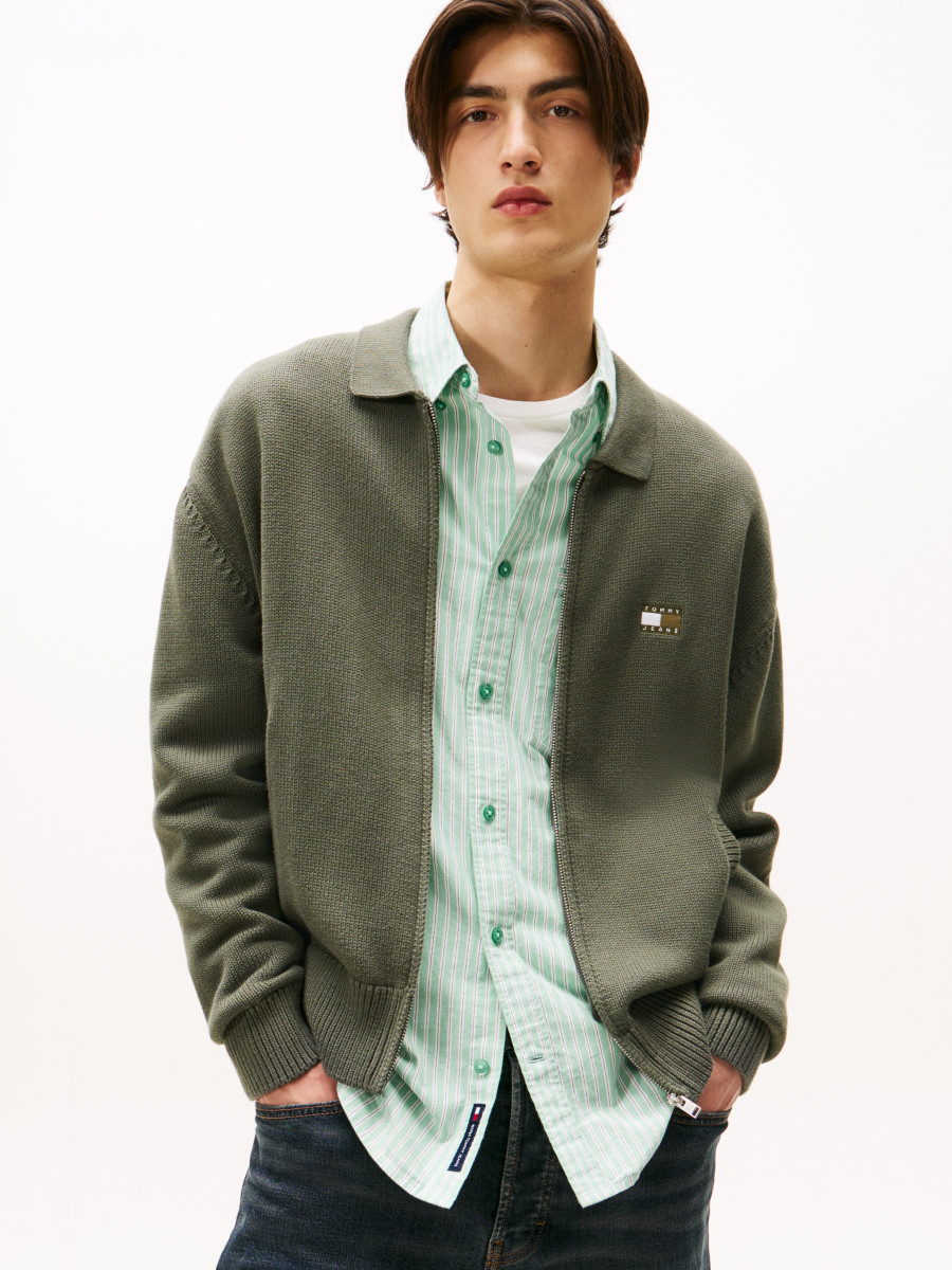 Diese hochwertige Strickjacke für Herren vereint klassischen Stil mit modernem Komfort. Der Hemdkragen sorgt für einen gepflegten Look, während der durchgehende Reißverschluss funktional und stilvoll zugleich ist. Die gerippte Struktur an Saum und Ärmeln garantiert einen optimalen Sitz und verleiht der Jacke ihre charakteristische Form.
