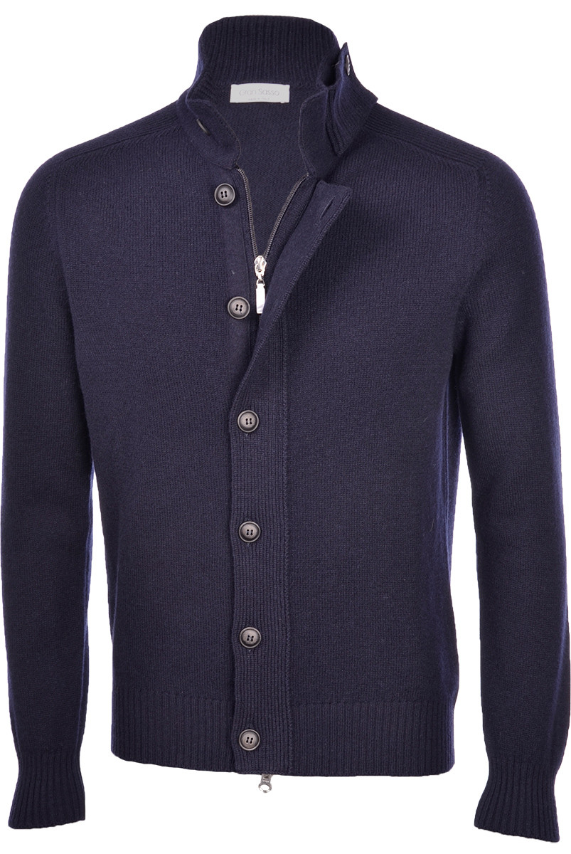 Modern Fit | Langarm | Stehkragen | Verdeckter Reißverschluss mit Knopfleiste | Rippbündchen | Merinowolle