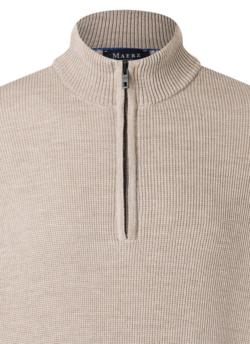 Dieser klassische Herren Troyer-Pullover besticht durch ein zeitloses Design und eine durchdachte Materialkombination aus Baumwolle und Wolle. Der Pullover ist in einem Regular Fit geschnitten, der eine angenehm gerade Silhouette und bequemen Sitz gewährleistet. Ein besonderes Detail ist der doppellagige Strick: hautfreundliche Baumwolle innen trifft auf feine Merinowolle außen. Diese innovative Komposition sorgt für natürliche Temperaturregulierung, Formstabilität und eine weiche Haptik. Der Stehkragen mit Reißverschluss rundet das gepflegte, alltagstaugliche Erscheinungsbild ab.