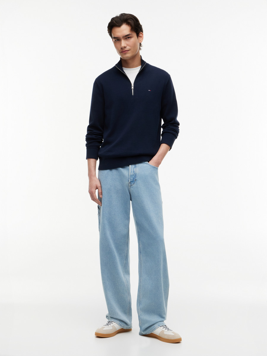 Slim Fit | Reine, gekämmte Baumwolle | Viertel-Reißverschluss | Trichterkragen | Kragen, Bündchen und Saum aus Rippstrick | Tommy Jeans-Branding