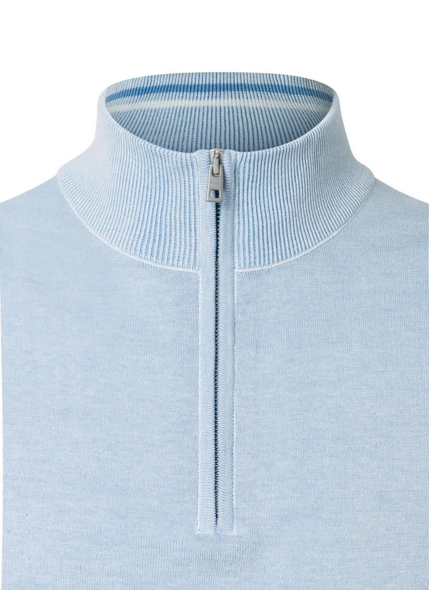 Stehkragen mit Reißverschluss | Langarm | Reine Baumwolle | Rippbündchen | Regular Fit